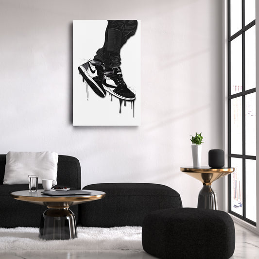 Air Jordan 1 Mid Black White Canvas Print | Sneakerhead Wall Art