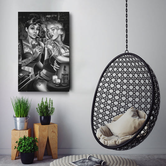 Marilyn Monroe & Audrey Hepburn Tattoo Shop Canvas Print | Vintage Icon Wall Art