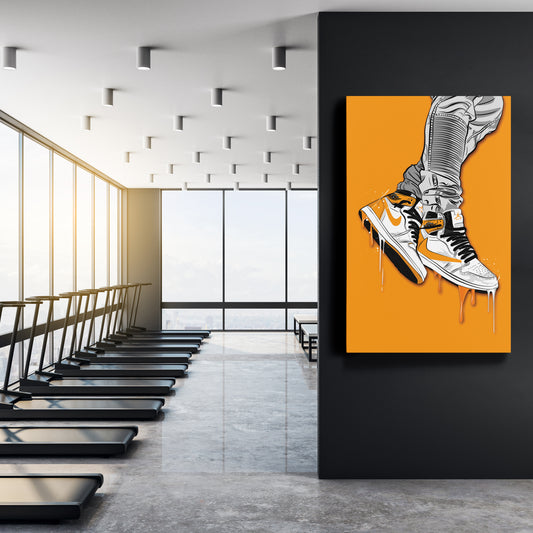 Air Jordan 1 Mid Yellow White Canvas Print | Sneakerhead Wall Art