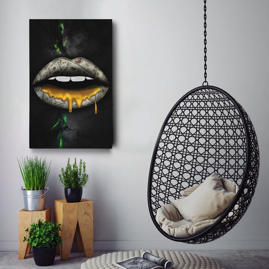 Gold Lips Dollar Canvas Print | Luxury Wall Art Decor