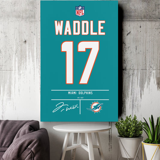 Jaylen Waddle Dolphins Jersey Canvas Print | Wall Art Decor