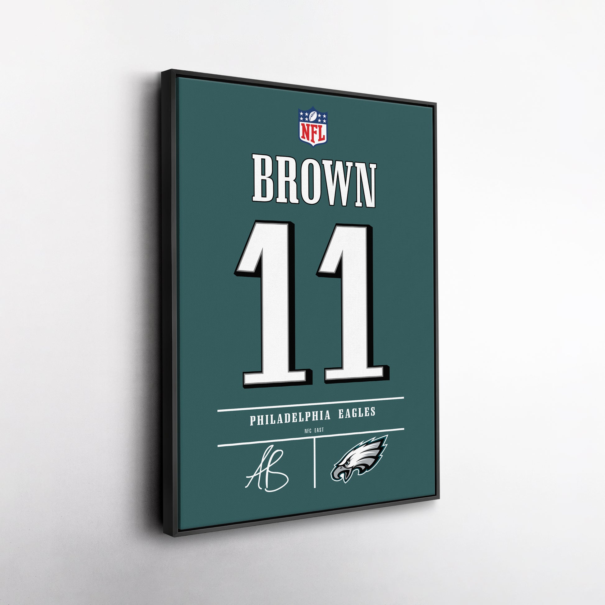 Featuring A. J. Brown’s iconic Eagles jersey number and team logo, this premium canvas is available in various sizes and can be framed or unframed to suit your decor needs. It’s the ideal gift for sports enthusiasts and football lovers alike, offering high-quality materials and a lasting impression.