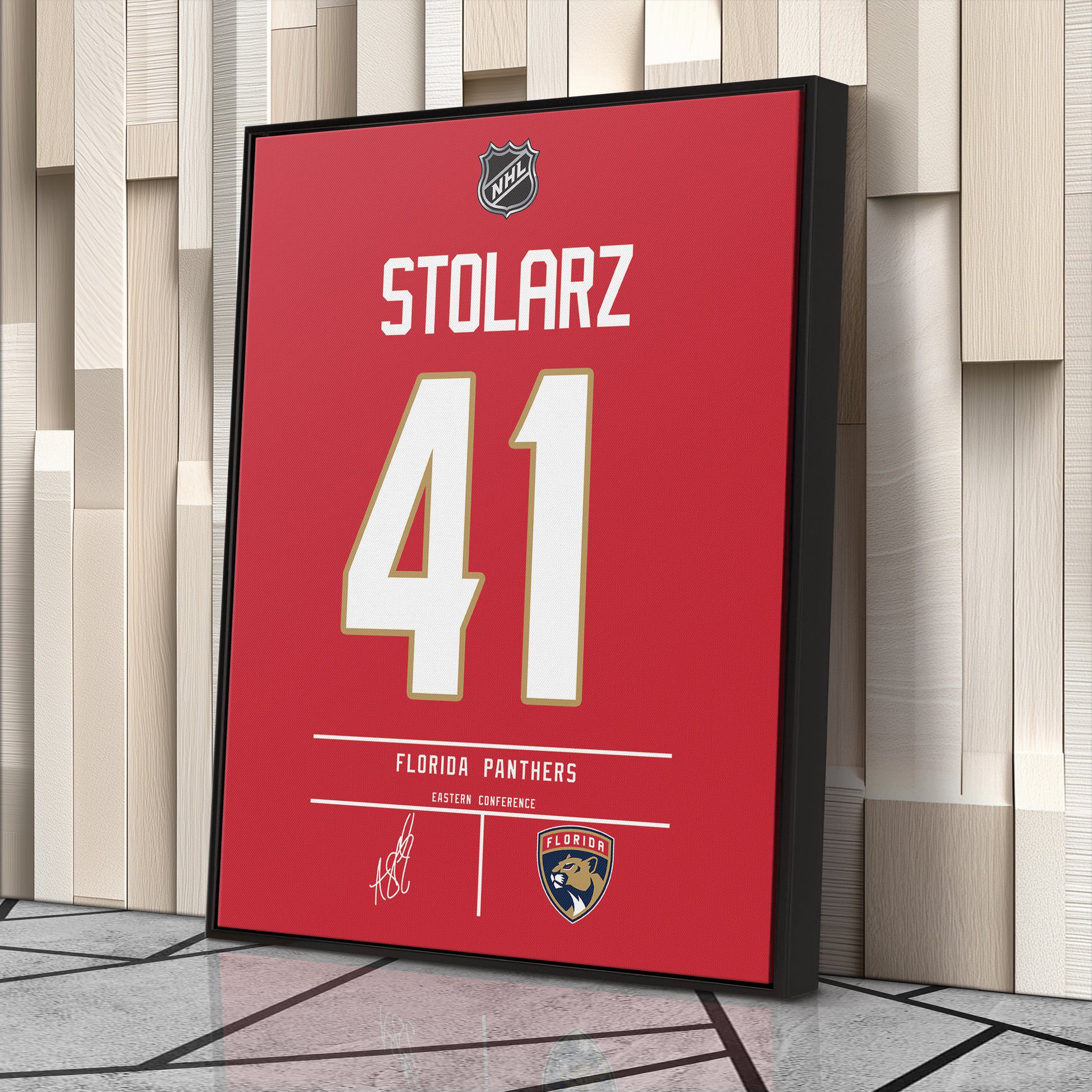 Featuring Anthony Stolarz’s iconic Florida Panthers jersey number and team logo, this premium canvas is available in various sizes and can be framed or unframed to suit your decor needs. It’s the ideal gift for sports enthusiasts and hockey lovers alike, offering high-quality materials and a lasting impression.