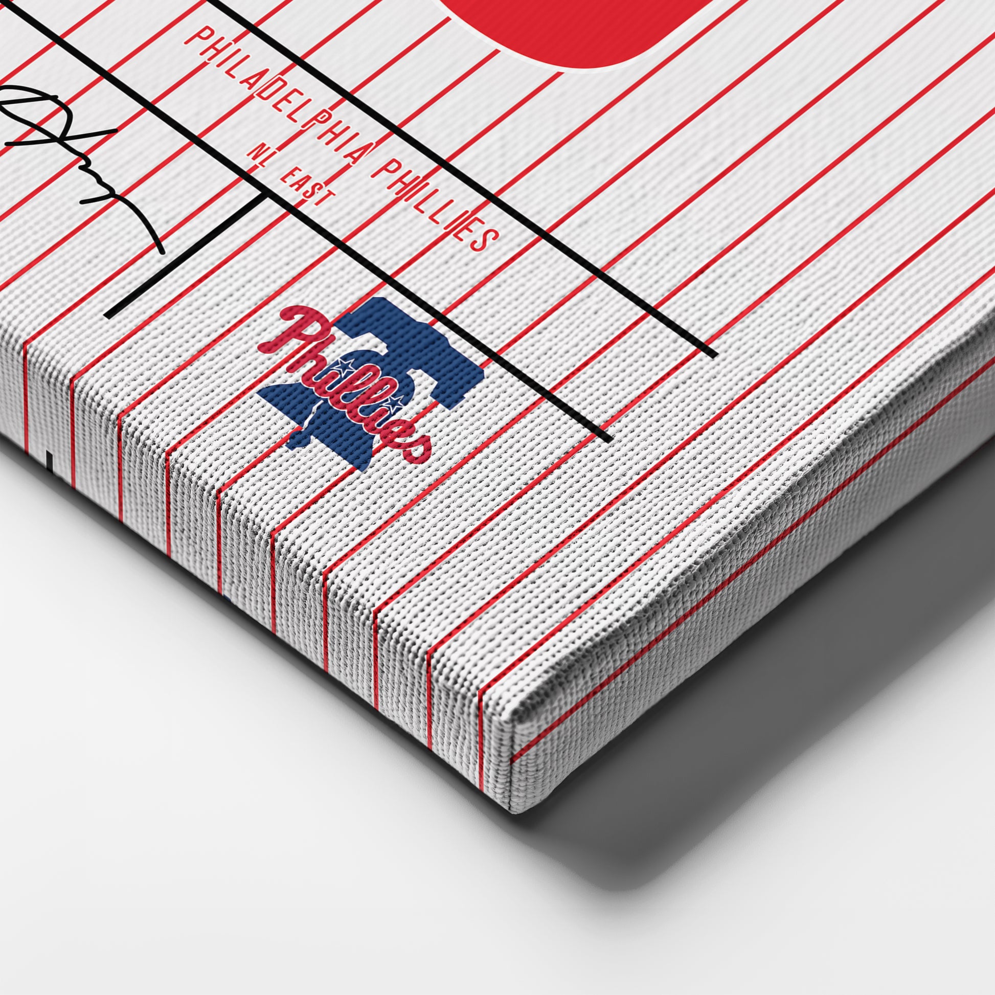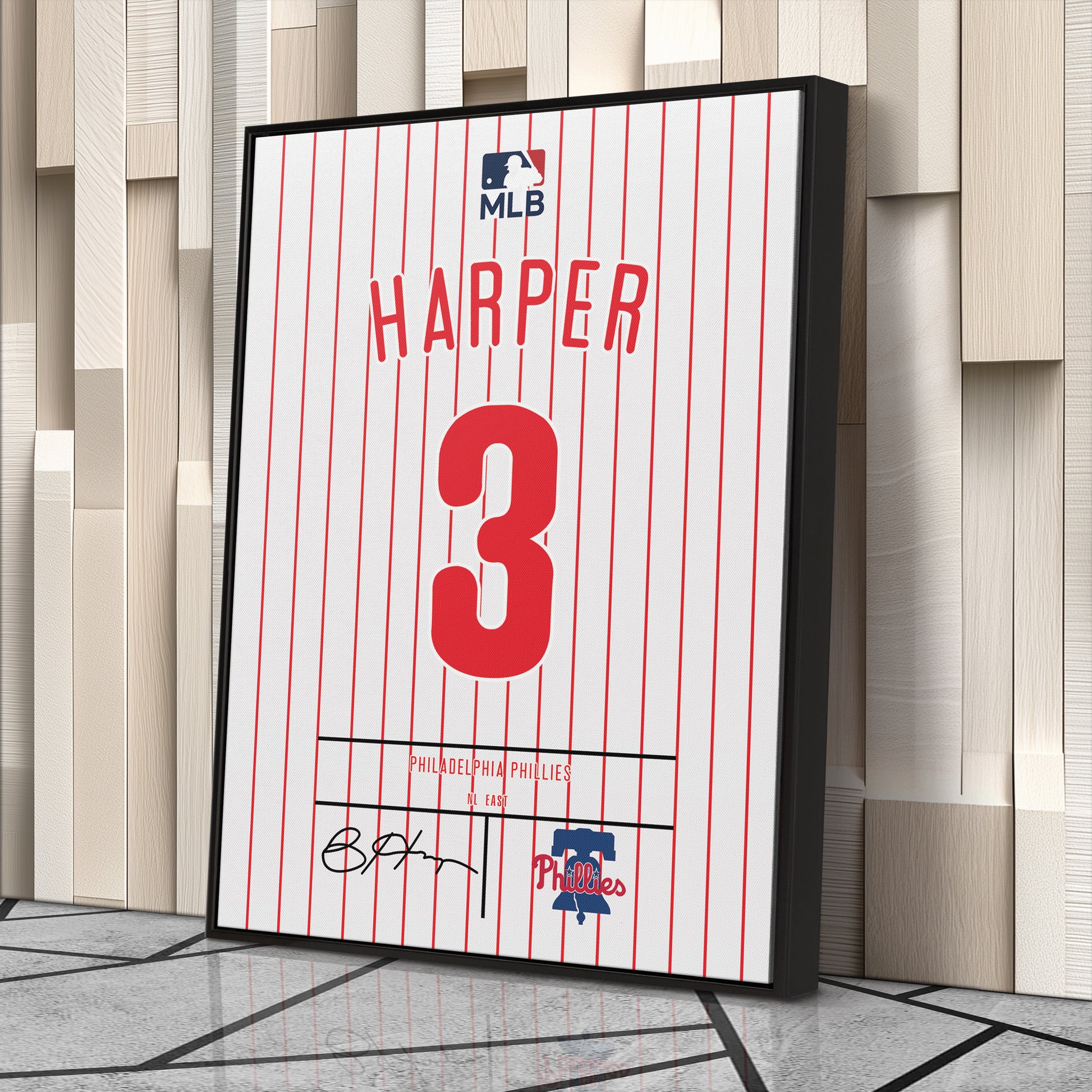 Elevate your space with this Bryce Harper Jersey Canvas Print, designed to bring the energy of Philadelphia Phillies baseball into your home. Perfect for die-hard Phillies fans, this vibrant wall art captures the essence of Bryce Harper's legendary career. Whether you’re enhancing your fan cave, office, or living room, this made-to-order canvas print adds a bold and stylish touch to any setting.