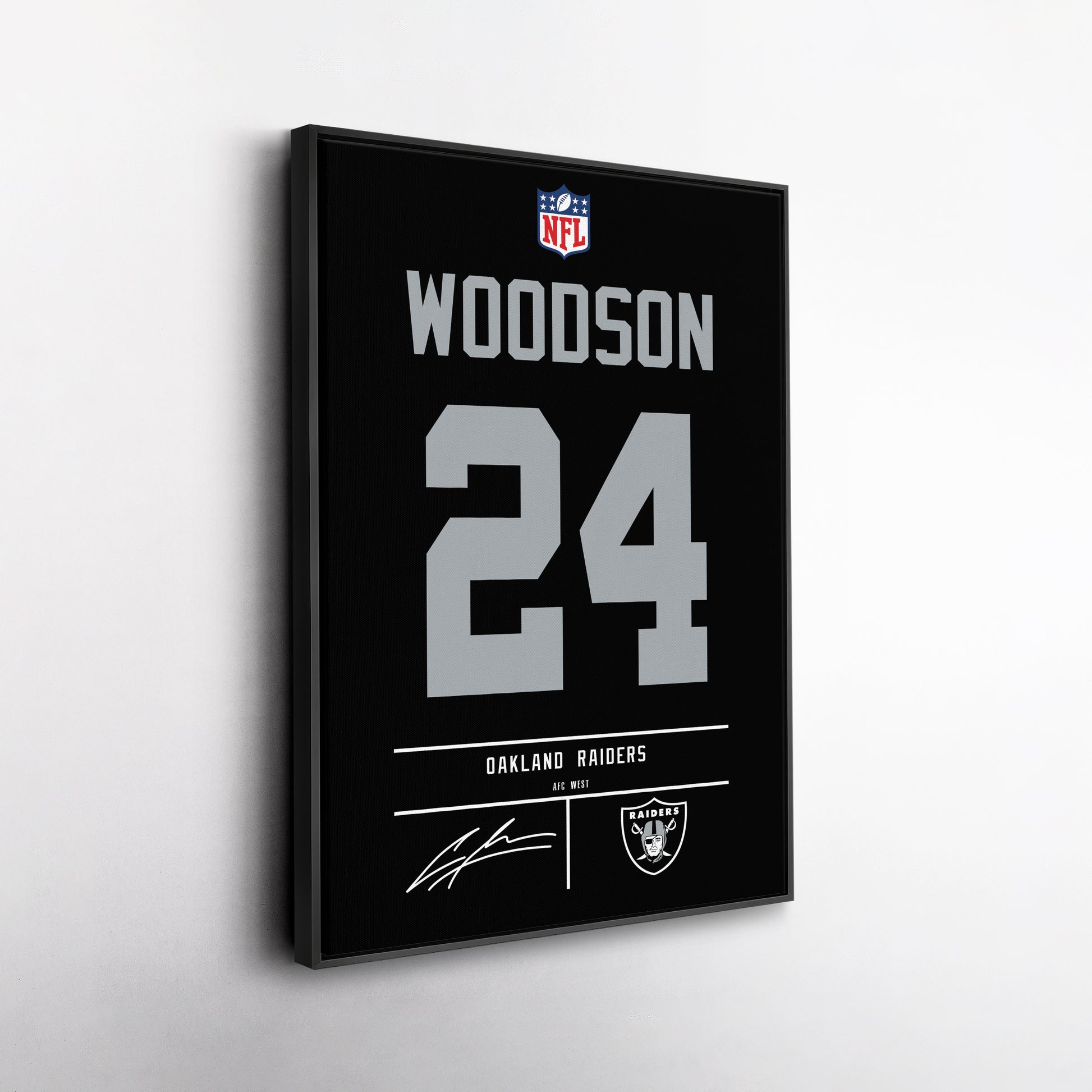 Featuring Charles Woodson’s iconic Raiders jersey number and team logo, this premium canvas is available in various sizes and can be framed or unframed to suit your decor needs. It’s the ideal gift for sports enthusiasts and football lovers alike, offering high-quality materials and a lasting impression.