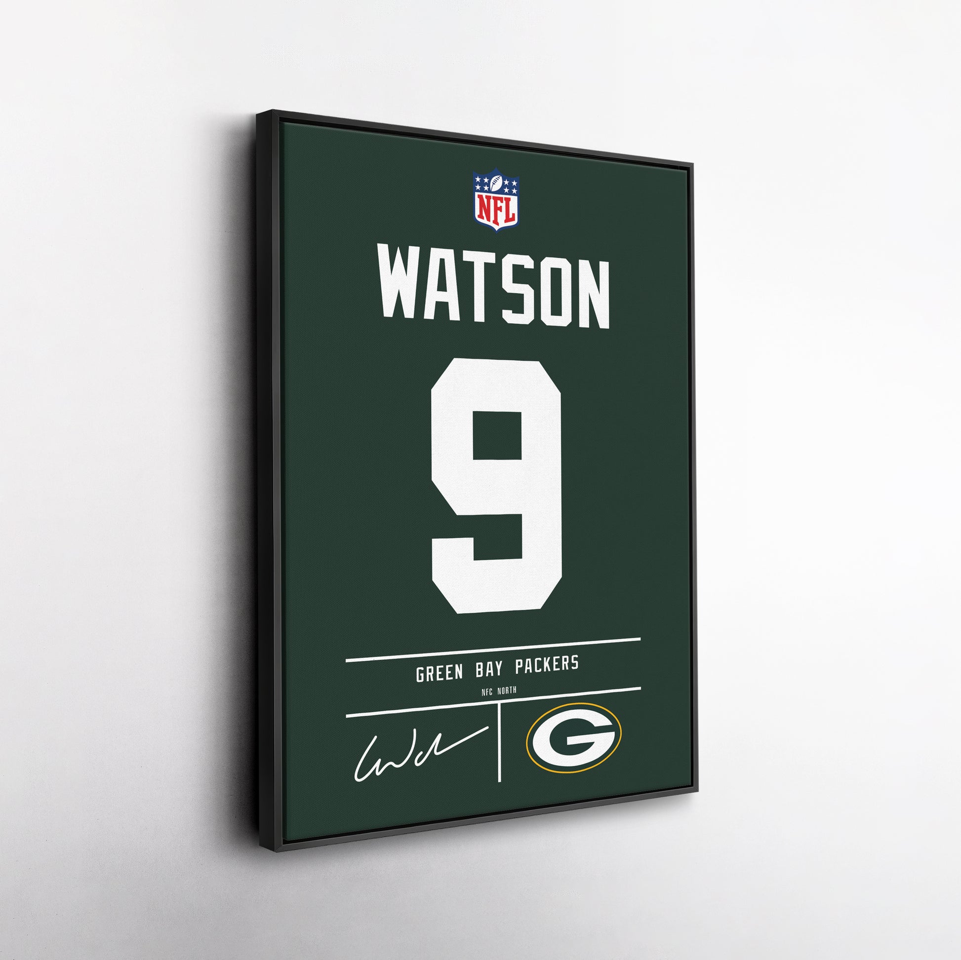 Featuring Christian Watson’s iconic Green Bay Packers jersey number and team logo, this premium canvas is available in various sizes and can be framed or unframed to suit your decor needs. It’s the ideal gift for sports enthusiasts and football lovers alike, offering high-quality materials and a lasting impression.
