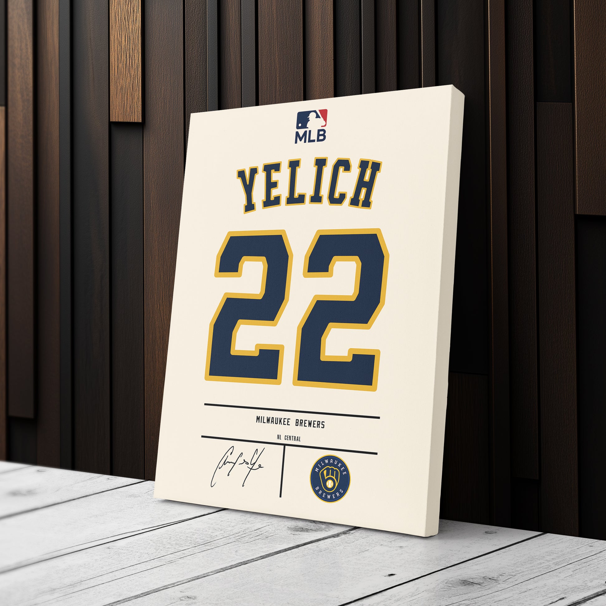 Featuring Christian Yelich’s iconic Brewers jersey number and team logo, this premium canvas is available in various sizes and can be framed or unframed to suit your decor needs. It’s the ideal gift for sports enthusiasts and baseball lovers alike, offering high-quality materials and a lasting impression.