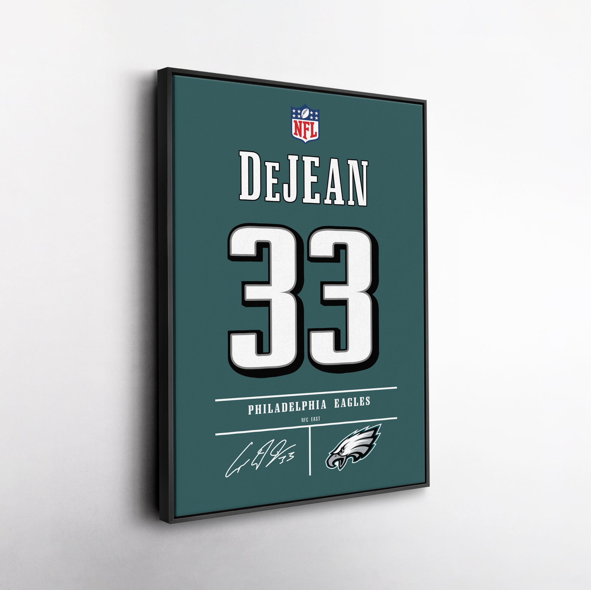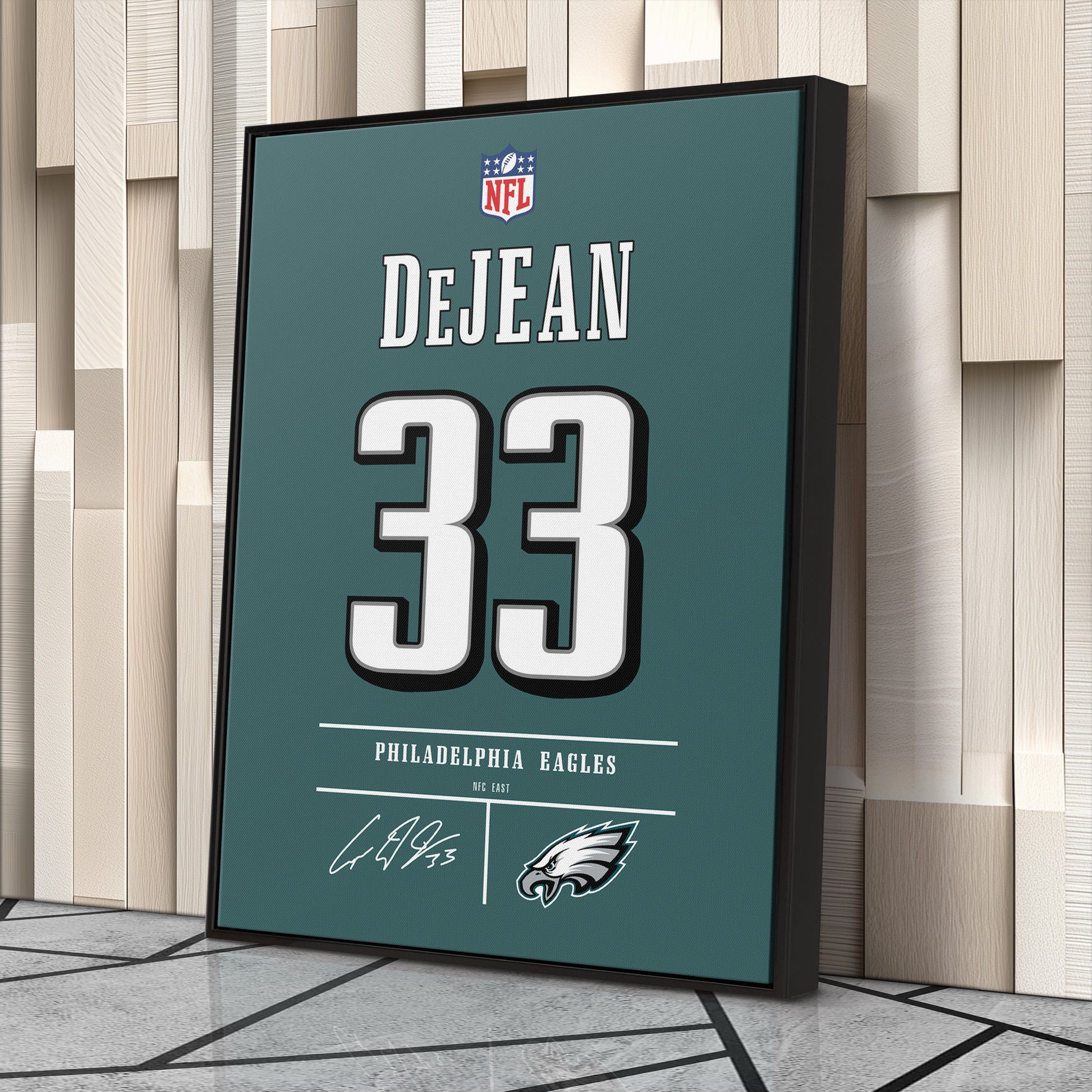 Celebrate the rising star, Cooper DeJean, as a Philadelphia Eagle with this striking Jersey Canvas Print. Designed for Eagles fans, this vibrant piece of wall art brings DeJean’s electrifying presence to your space. Perfect for your fan cave, office, or living room, this print captures the essence of the future of Eagles football in bold, high-quality canvas.