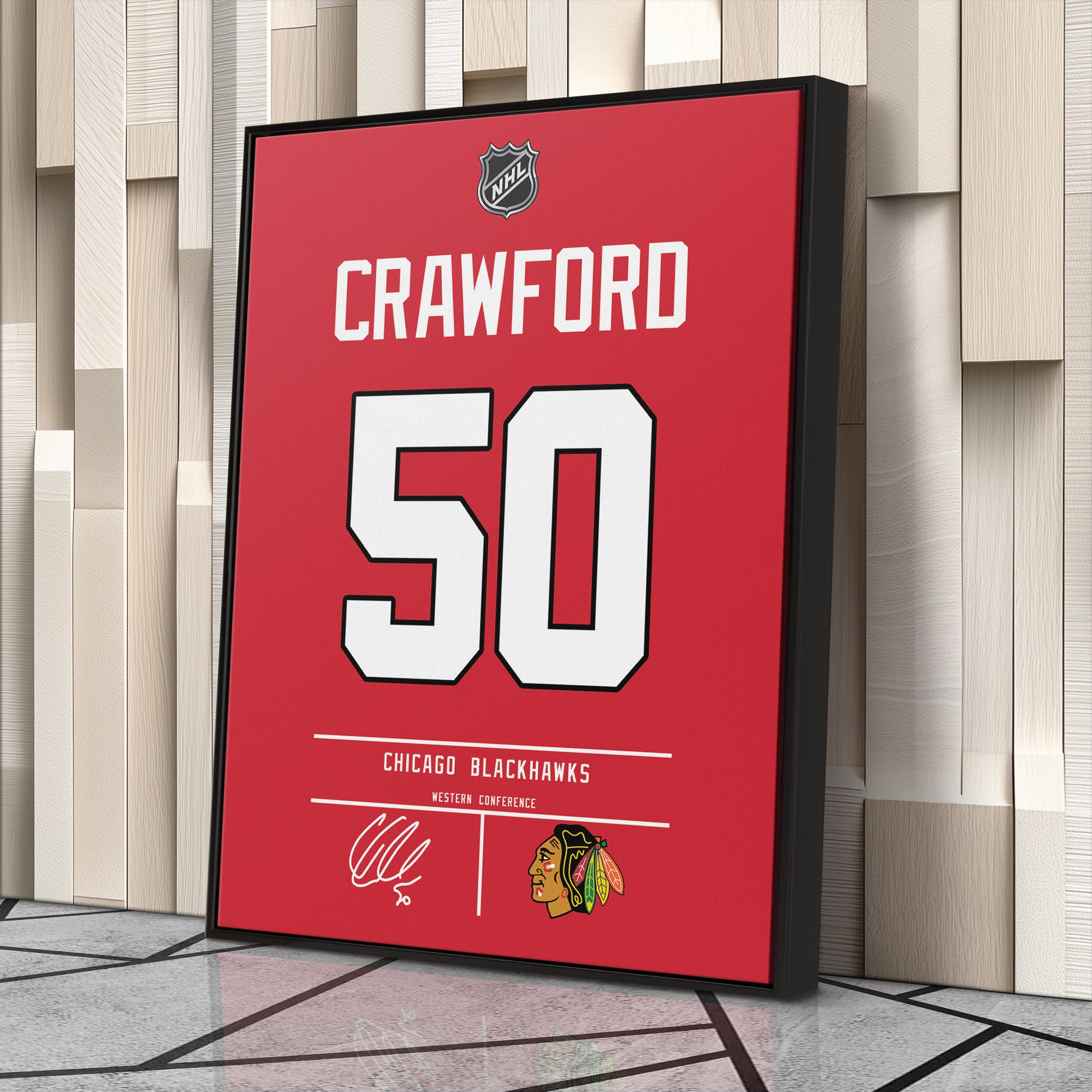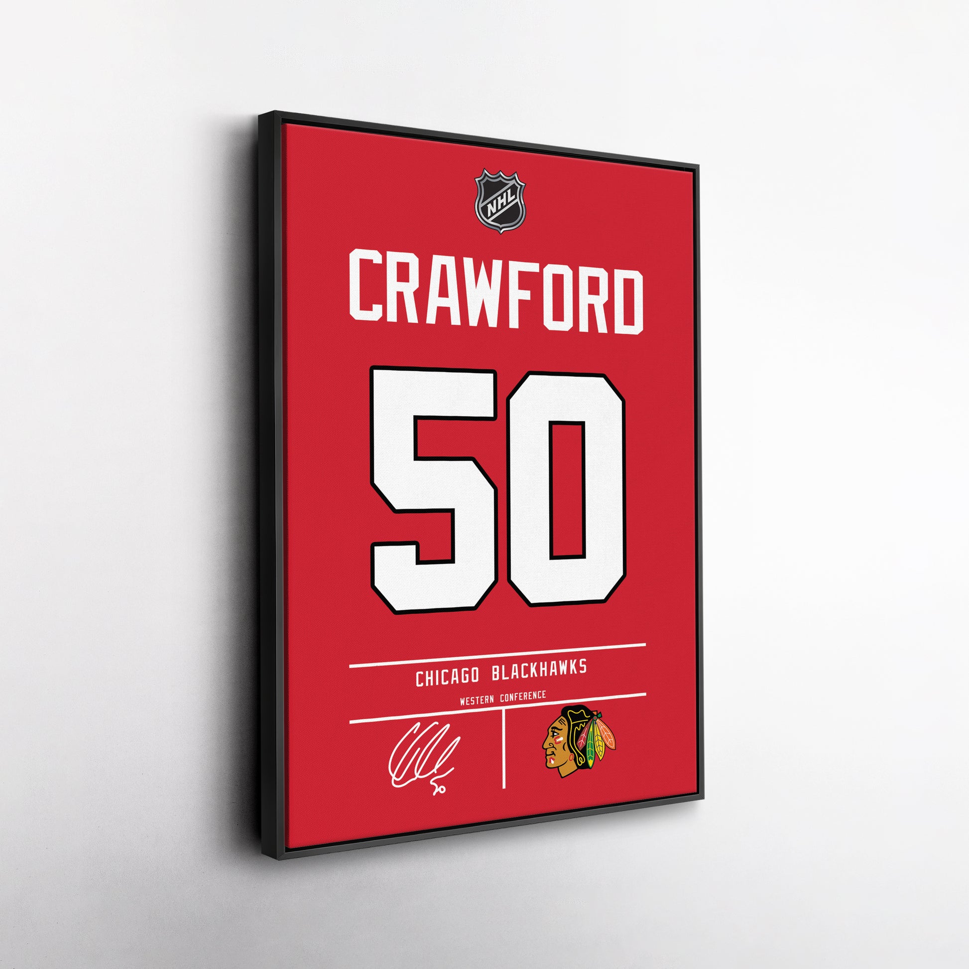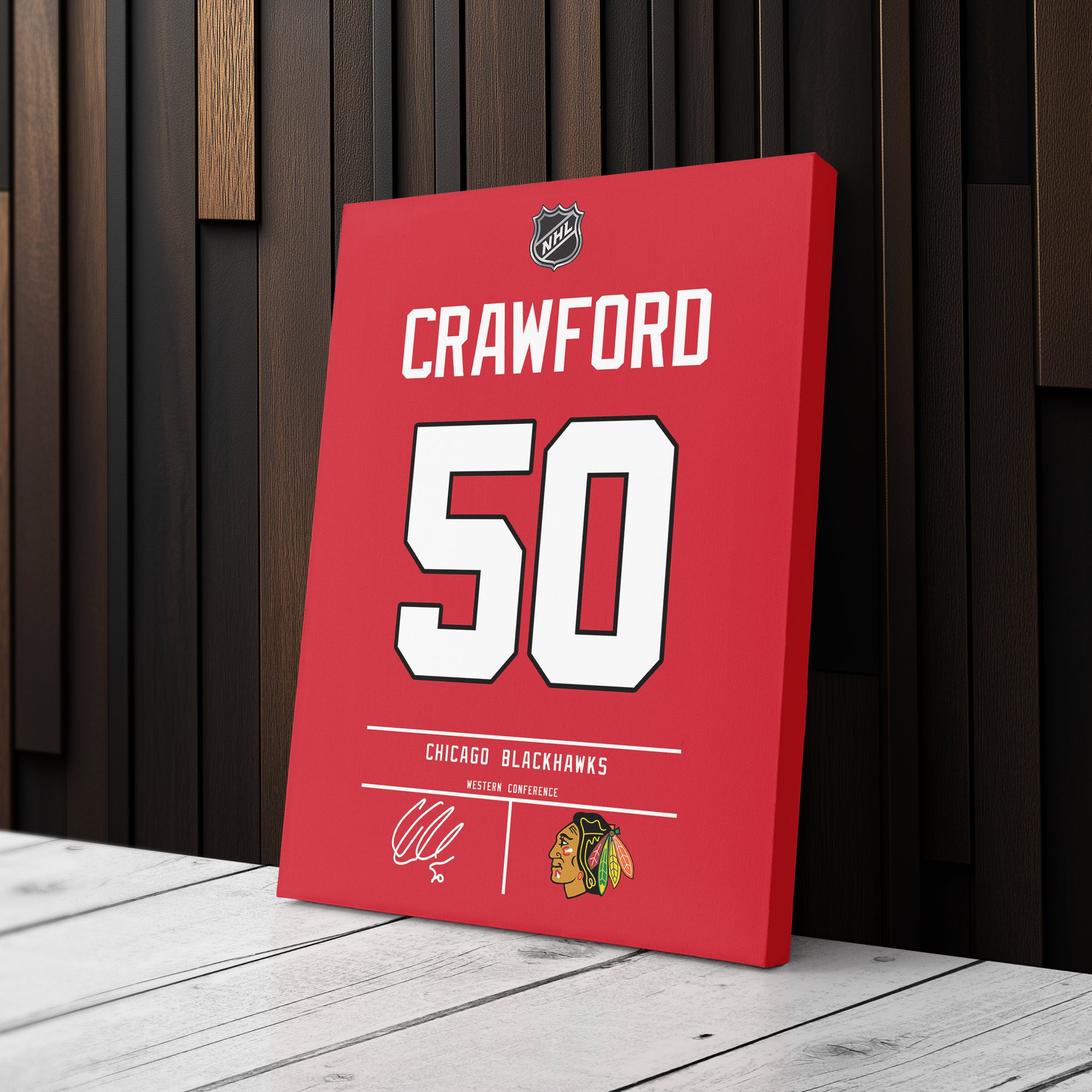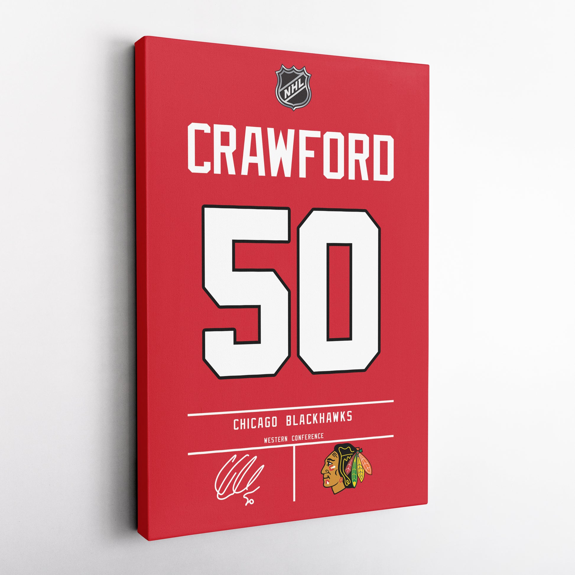 Featuring Corey Crawford’s iconic Chicago Blackhawks jersey number and team logo, this premium canvas is available in various sizes and can be framed or unframed to suit your decor needs. It’s the ideal gift for sports enthusiasts and hockey lovers alike, offering high-quality materials and a lasting impression.