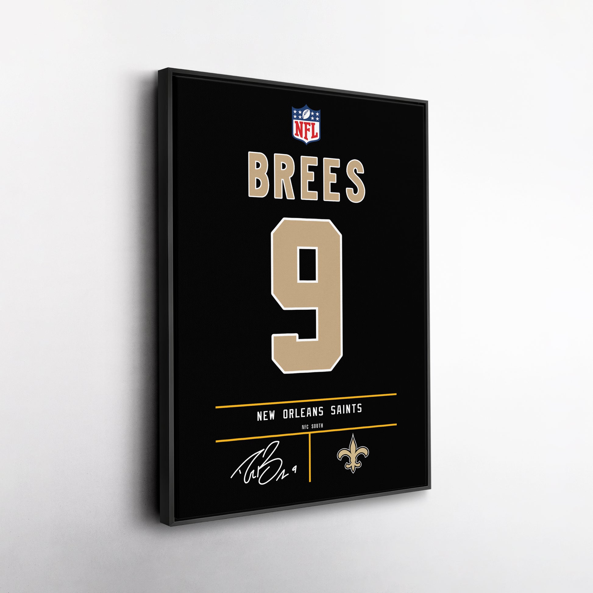 Featuring Drew Brees’s iconic Saints jersey number and team logo, this premium canvas is available in various sizes and can be framed or unframed to suit your decor needs. It’s the ideal gift for sports enthusiasts and football lovers alike, offering high-quality materials and a lasting impression.