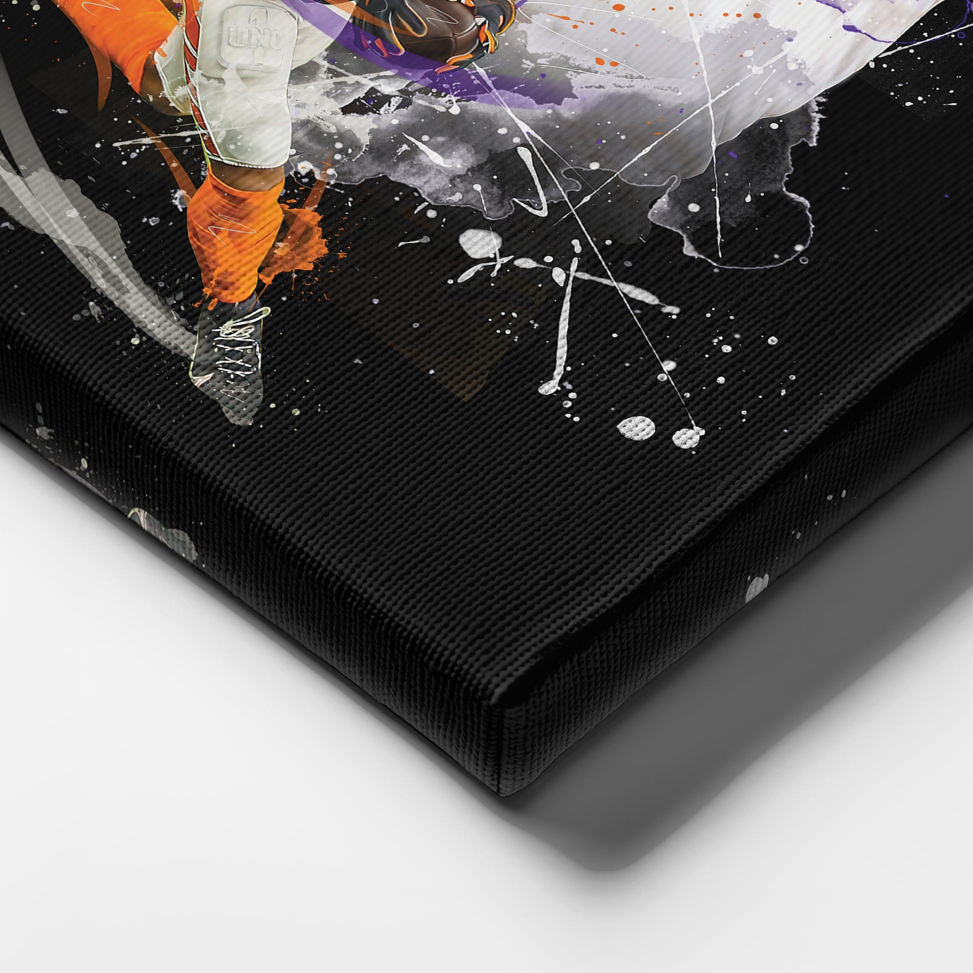 Celebrate the elite speed, explosive plays, and game-changing talent of Ja'Marr Chase with this Ja'Marr Chase Bengals Canvas Print. Featuring Chase in action, making clutch catches for the Cincinnati Bengals, this artwork captures his dynamic route running, deep threat ability, and record-breaking performances that have made him one of the most electrifying wide receivers in the NFL. Whether you're a die-hard Bengals fan, football enthusiast, or sports memorabilia collector, this high-quality canvas print is a must-have for your space.