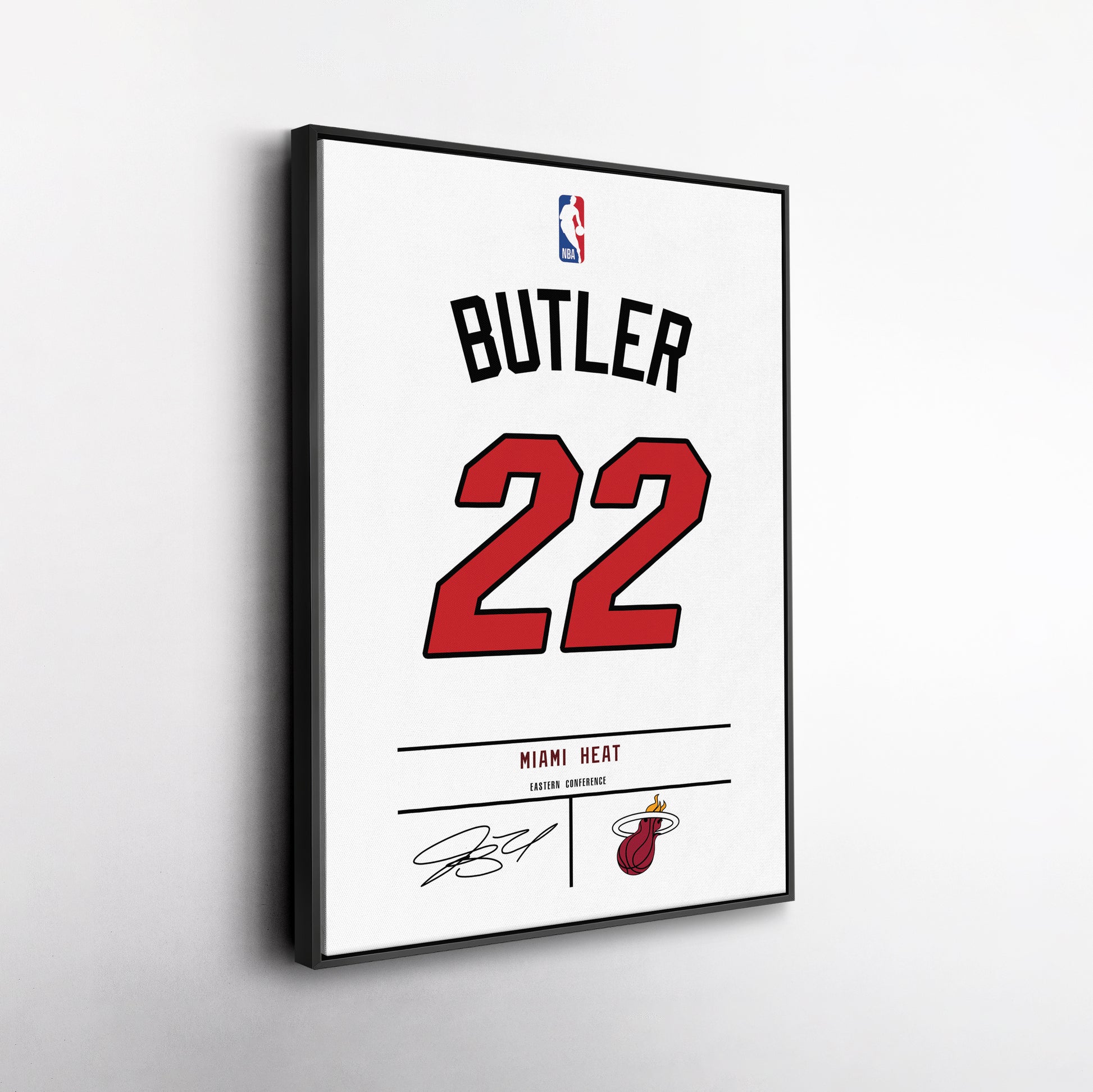 Featuring Jimmy Butler’s iconic Heat jersey number and team logo, this premium canvas is available in various sizes and can be framed or unframed to suit your decor needs. It’s the ideal gift for sports enthusiasts and basketball lovers alike, offering high-quality materials and a lasting impression.