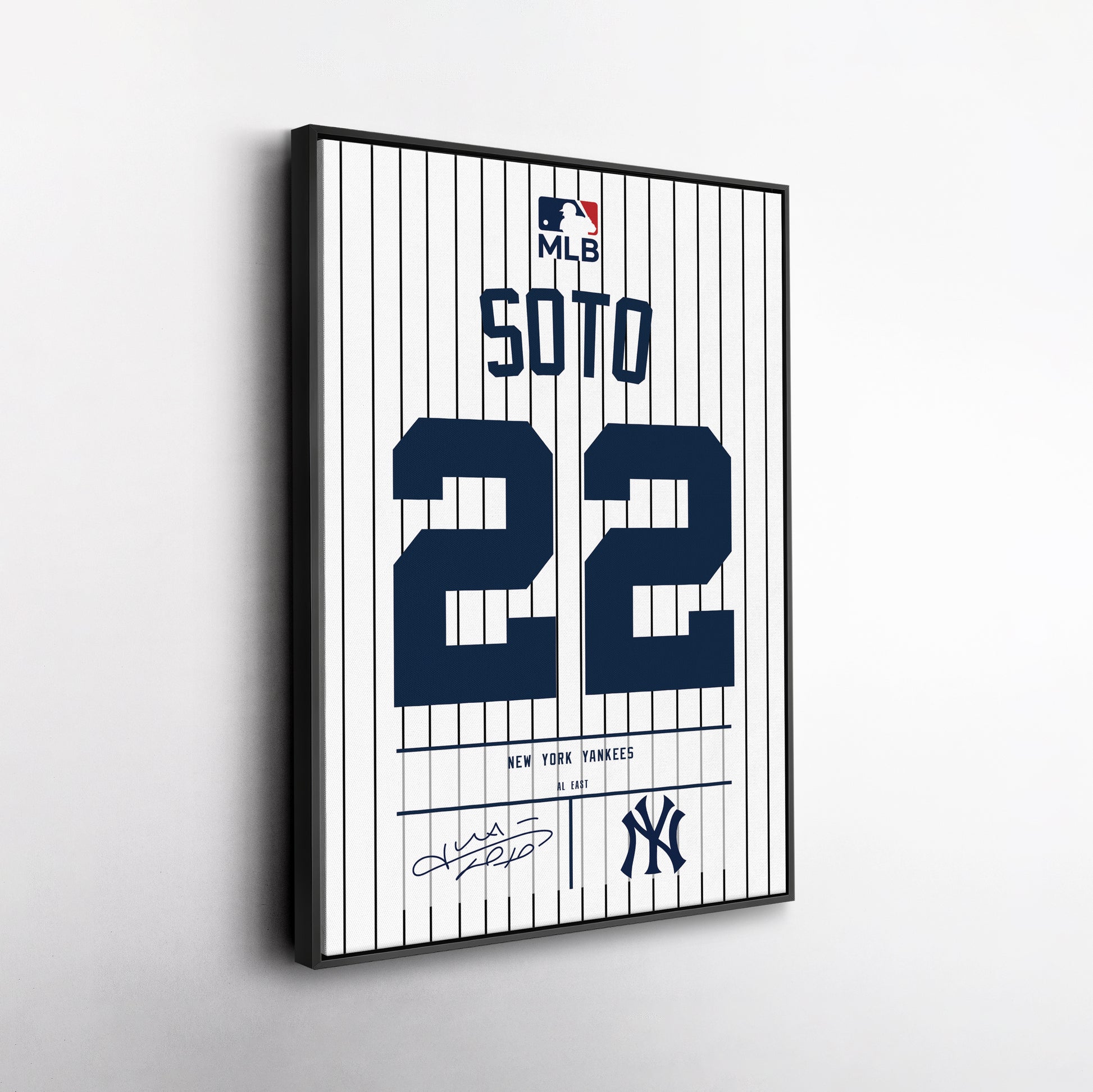 Featuring Juan Soto’s iconic New York Yankees jersey number and team logo, this premium canvas is available in various sizes and can be framed or unframed to suit your decor needs. It’s the ideal gift for sports enthusiasts and baseball lovers alike, offering high-quality materials and a lasting impression.