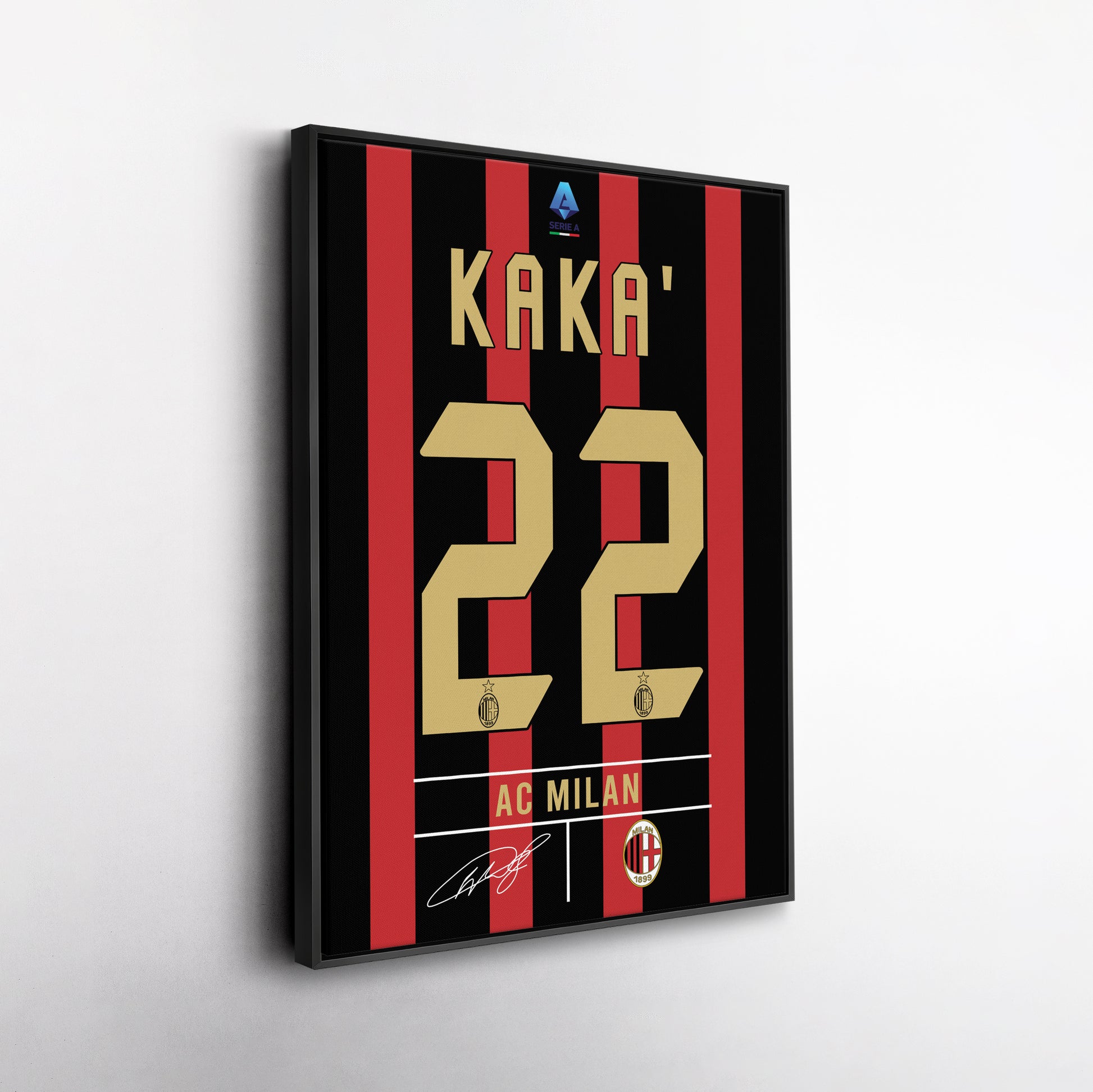 Featuring Kaká’s iconic AC Milan jersey number and team logo, this premium canvas is available in various sizes and can be framed or unframed to suit your decor needs. It’s the ideal gift for sports enthusiasts and football lovers alike, offering high-quality materials and a lasting impression.