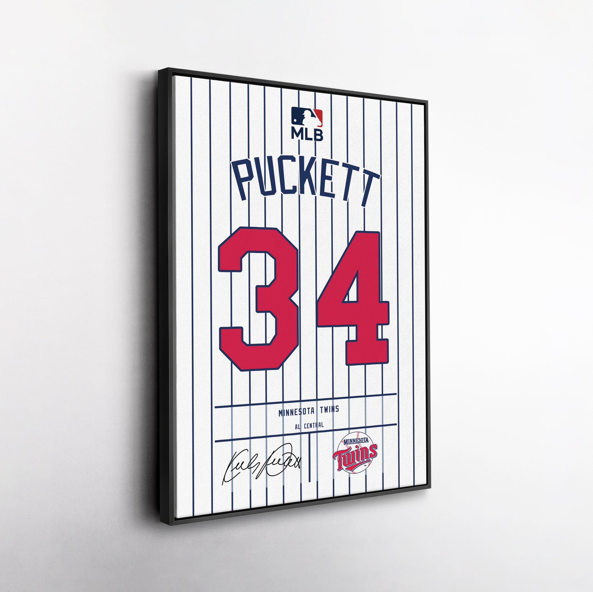 Featuring Kirby Puckett’s iconic Minnesota Twins jersey number and team logo, this premium canvas is available in various sizes and can be framed or unframed to suit your decor needs. It’s the ideal gift for sports enthusiasts and baseball lovers alike, offering high-quality materials and a lasting impression.
