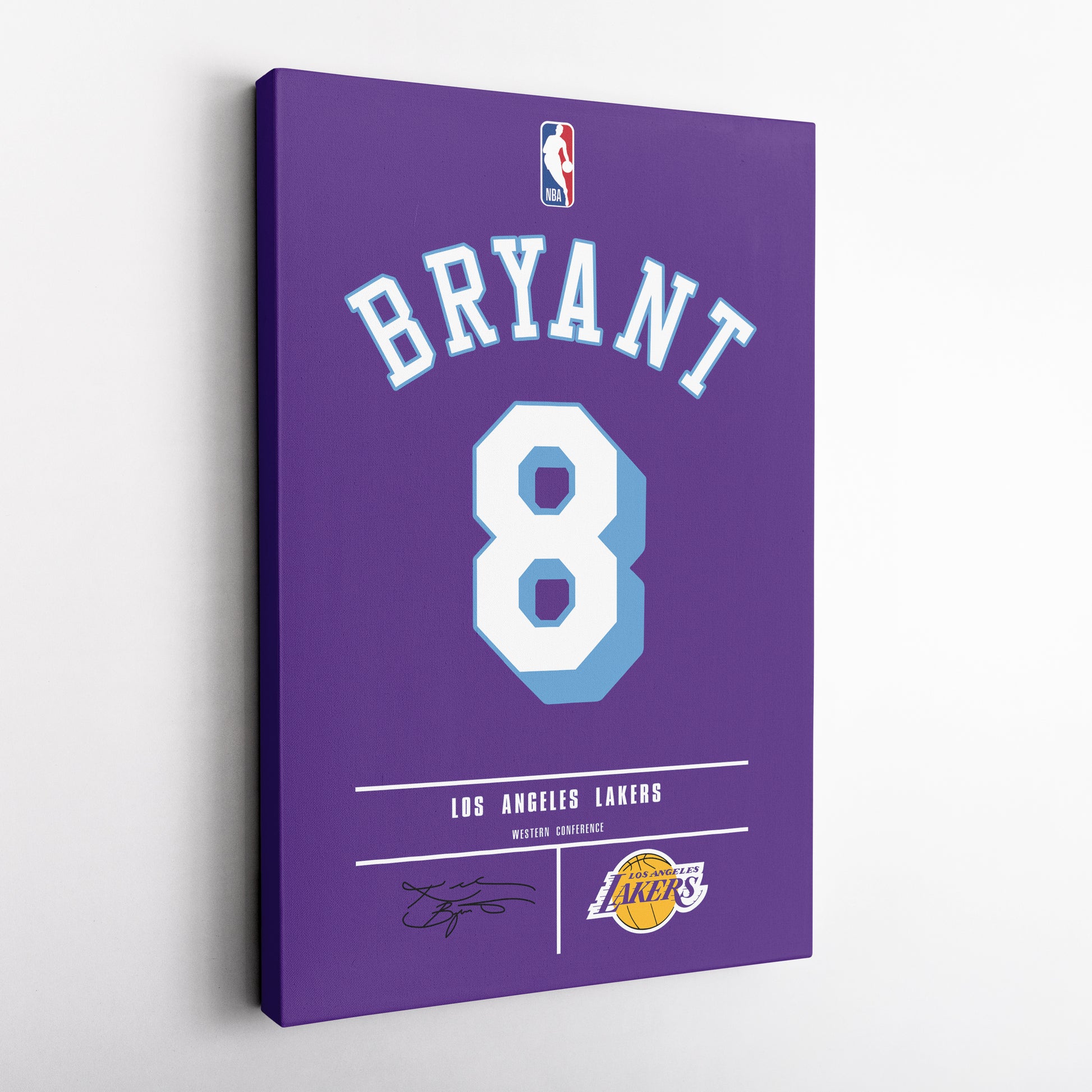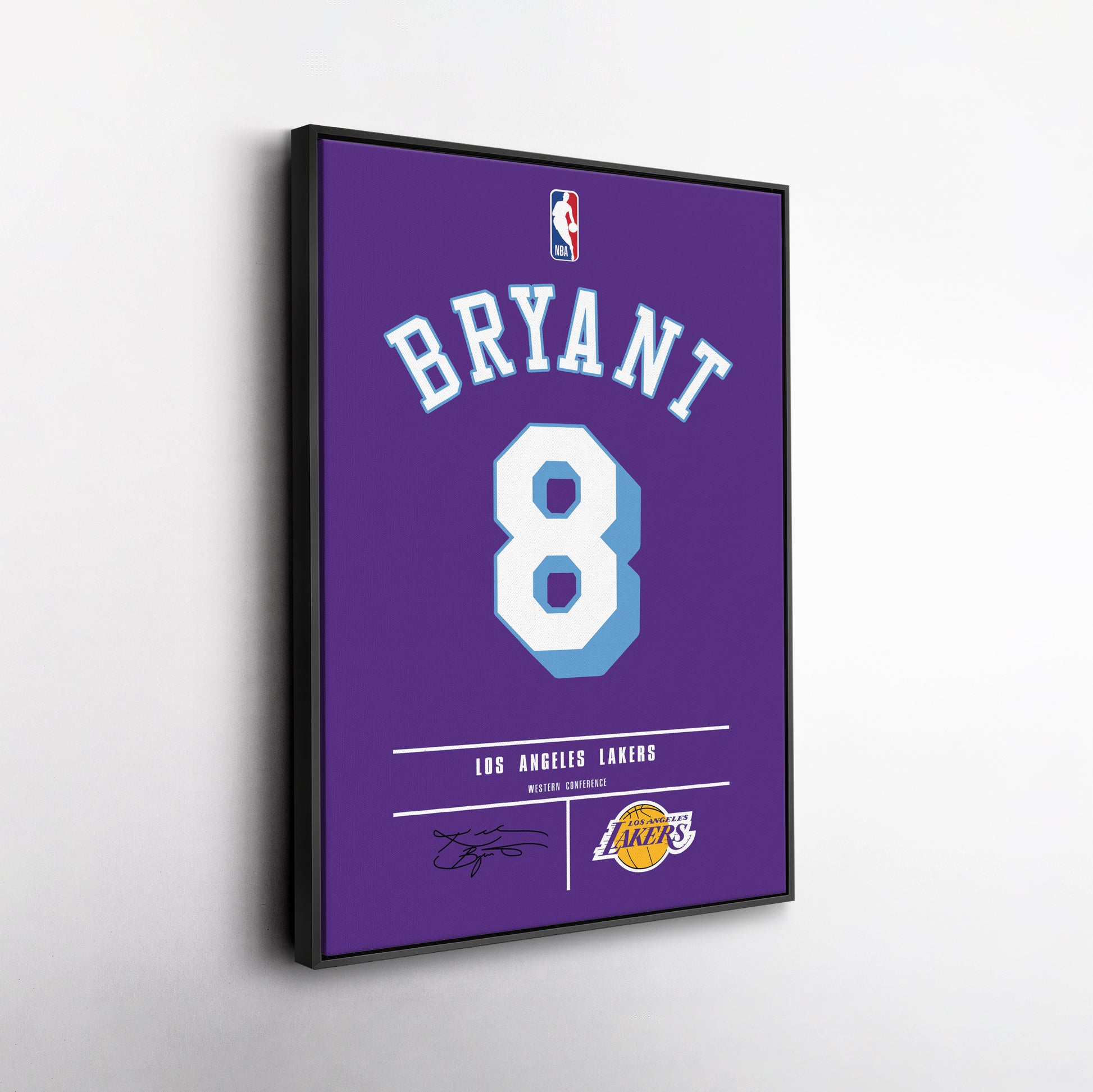 Featuring Kobe Bryant’s iconic Los Angeles Lakers purple jersey number and team logo, this premium canvas is available in various sizes and can be framed or unframed to suit your decor needs. It’s the ideal gift for sports enthusiasts and basketball lovers alike, offering high-quality materials and a lasting impression.