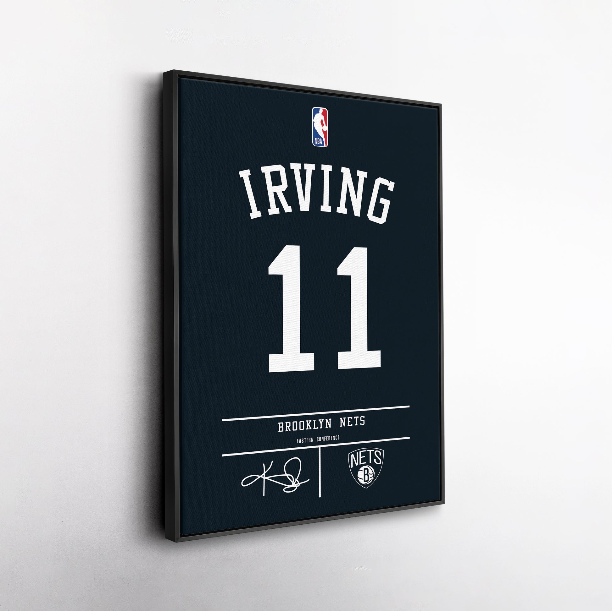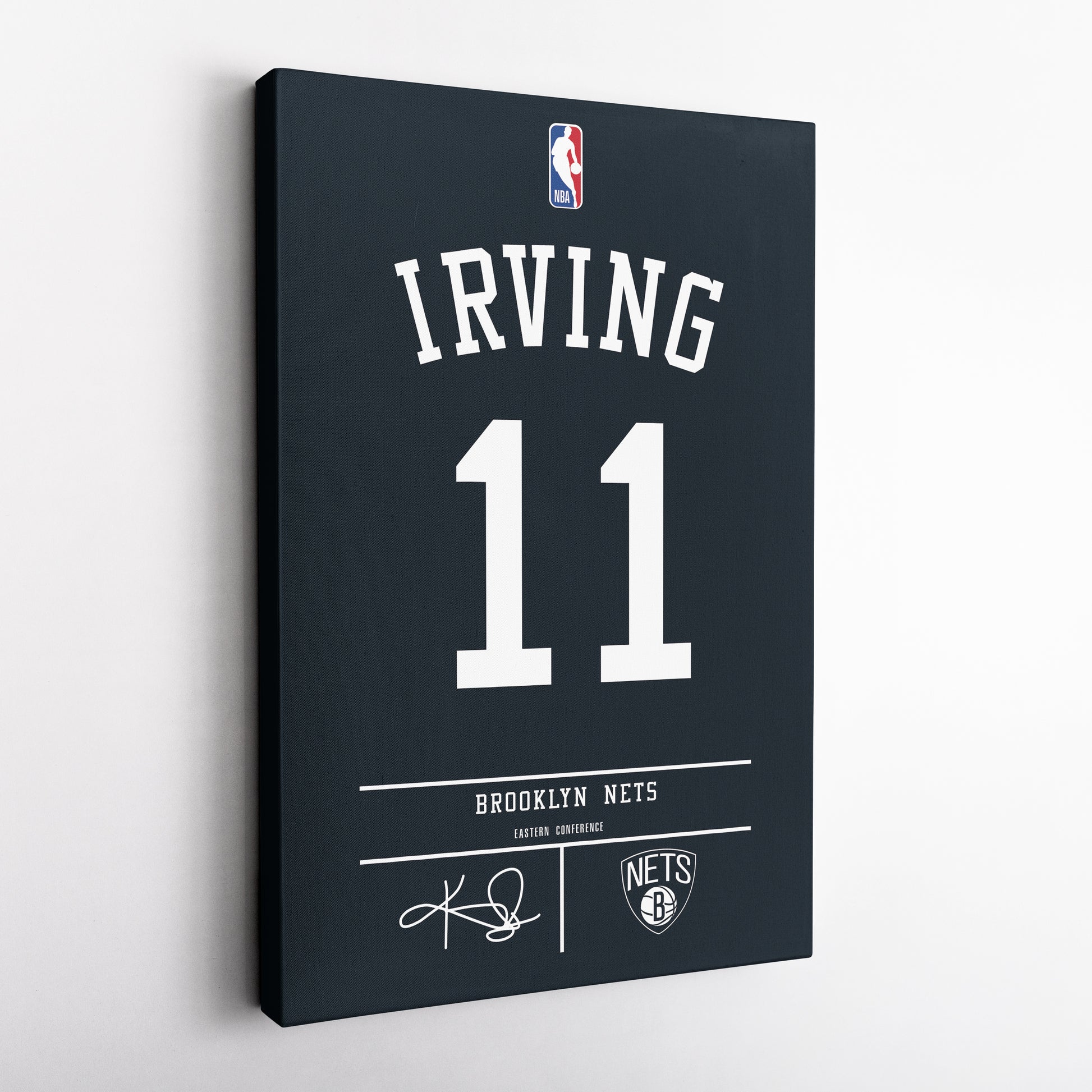 to-order canvas, featuring Kyrie Irving Nets's jersey number and team logo, is a must-have for die-hard fans.