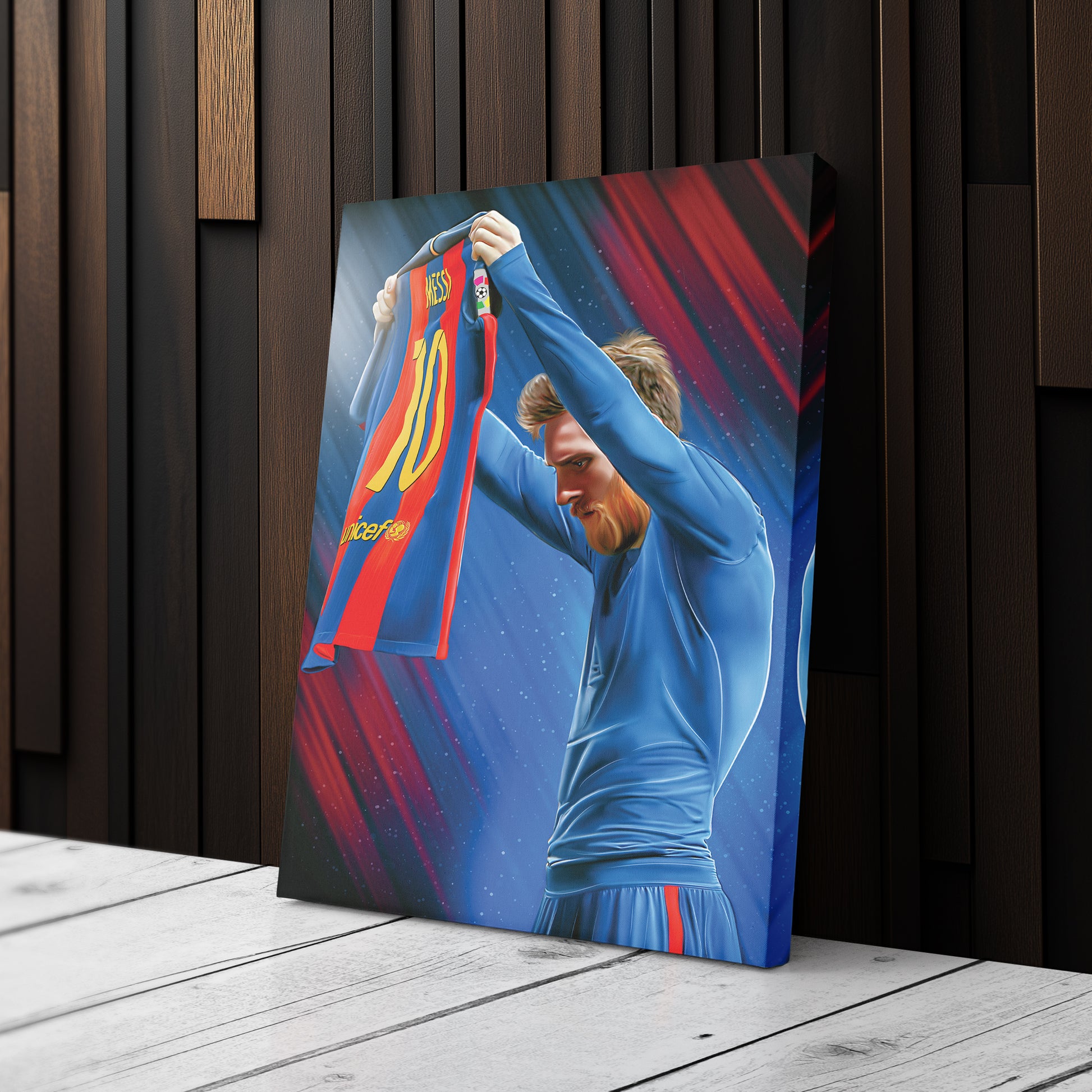 Relive the greatness and passion of Lionel Messi with this Iconic Celebration Canvas Print, capturing his legendary goal celebrations and historic moments on the field. Featuring Messi in his signature pose, honoring the fans and his triumphs, this artwork is a must-have for any soccer enthusiast, Argentina supporter, or Barcelona/Inter Miami fan.