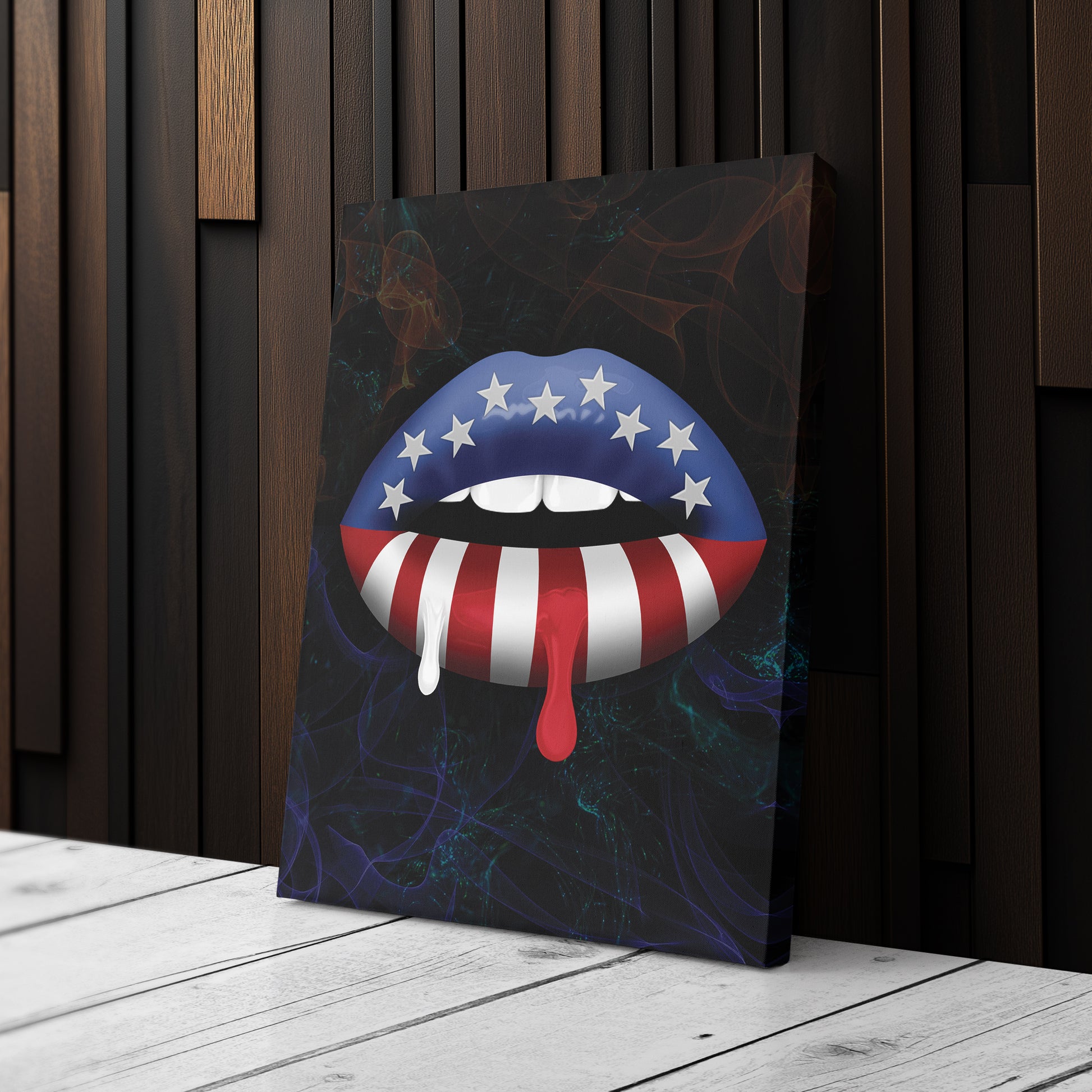 Lips American Flag Canvas Print | Patriotic Wall Art Decor
