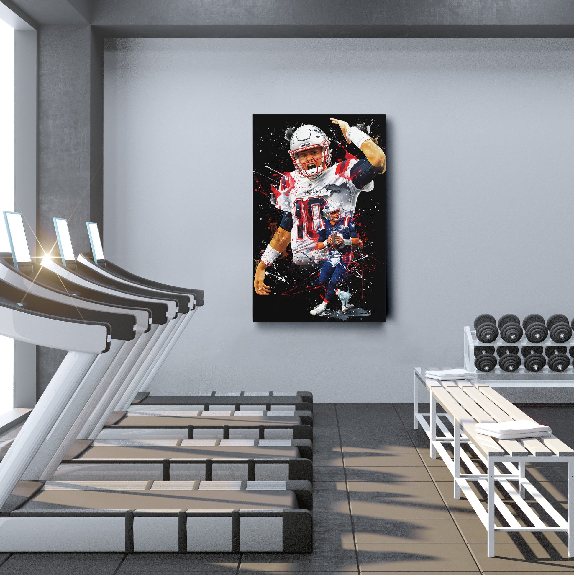 Perfect for man caves, game rooms, sports bars, offices, or any football-themed decor, this piece brings the energy and determination of Mac Jones to your walls.