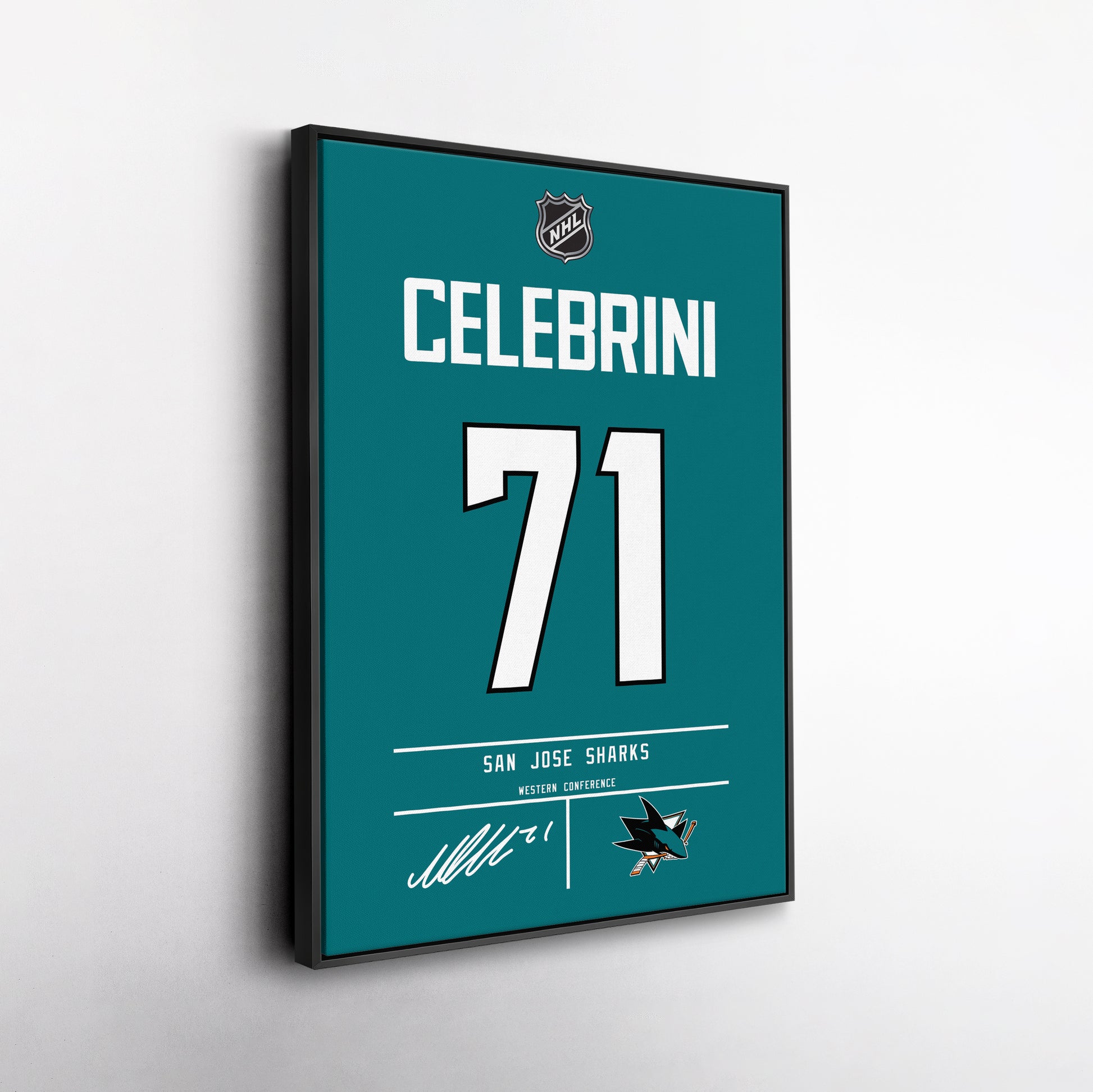 Elevate your space with this Macklin Celebrini Sharks Jersey Canvas Print, designed to bring the intensity of San Jose Sharks hockey straight into your home. Perfect for loyal Sharks fans, this dynamic wall art showcases the talent, excitement, and rising NHL stardom of Macklin Celebrini. Whether you’re upgrading your fan cave, office, or living room, this made-to-order canvas print adds a bold and modern touch to any environment.