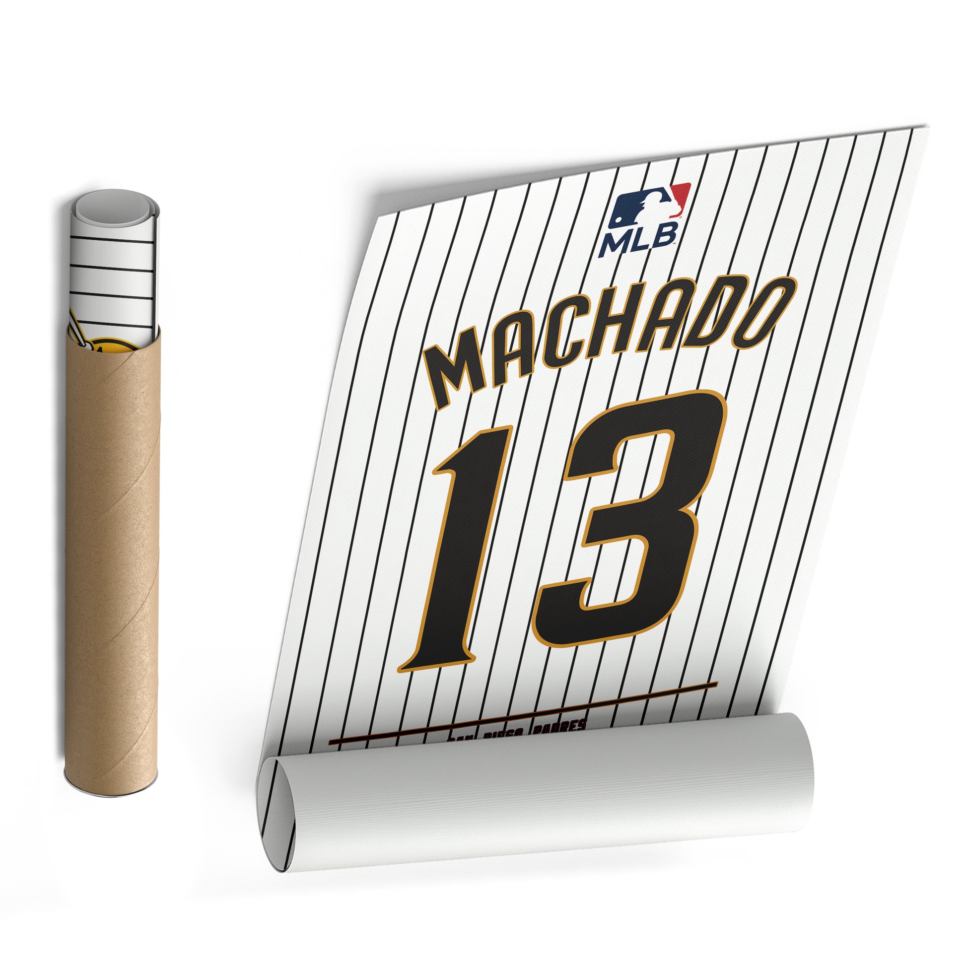 Featuring Manny Machado’s iconic Padres jersey number and team logo, this premium canvas is available in various sizes and can be framed or unframed to suit your decor needs. It’s the ideal gift for sports enthusiasts and baseball lovers alike, offering high-quality materials and a lasting impression.