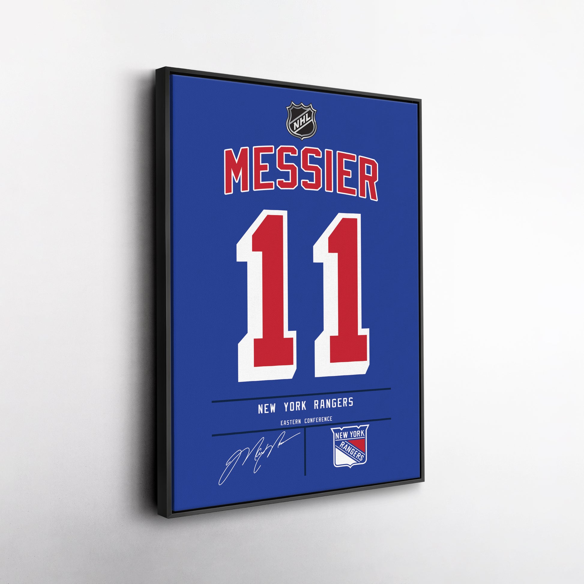 Featuring Mark Messier’s iconic New York Rangers jersey number and team logo, this premium canvas is available in various sizes and can be framed or unframed to suit your decor needs. It’s the ideal gift for sports enthusiasts and hockey lovers alike, offering high-quality materials and a lasting impression.