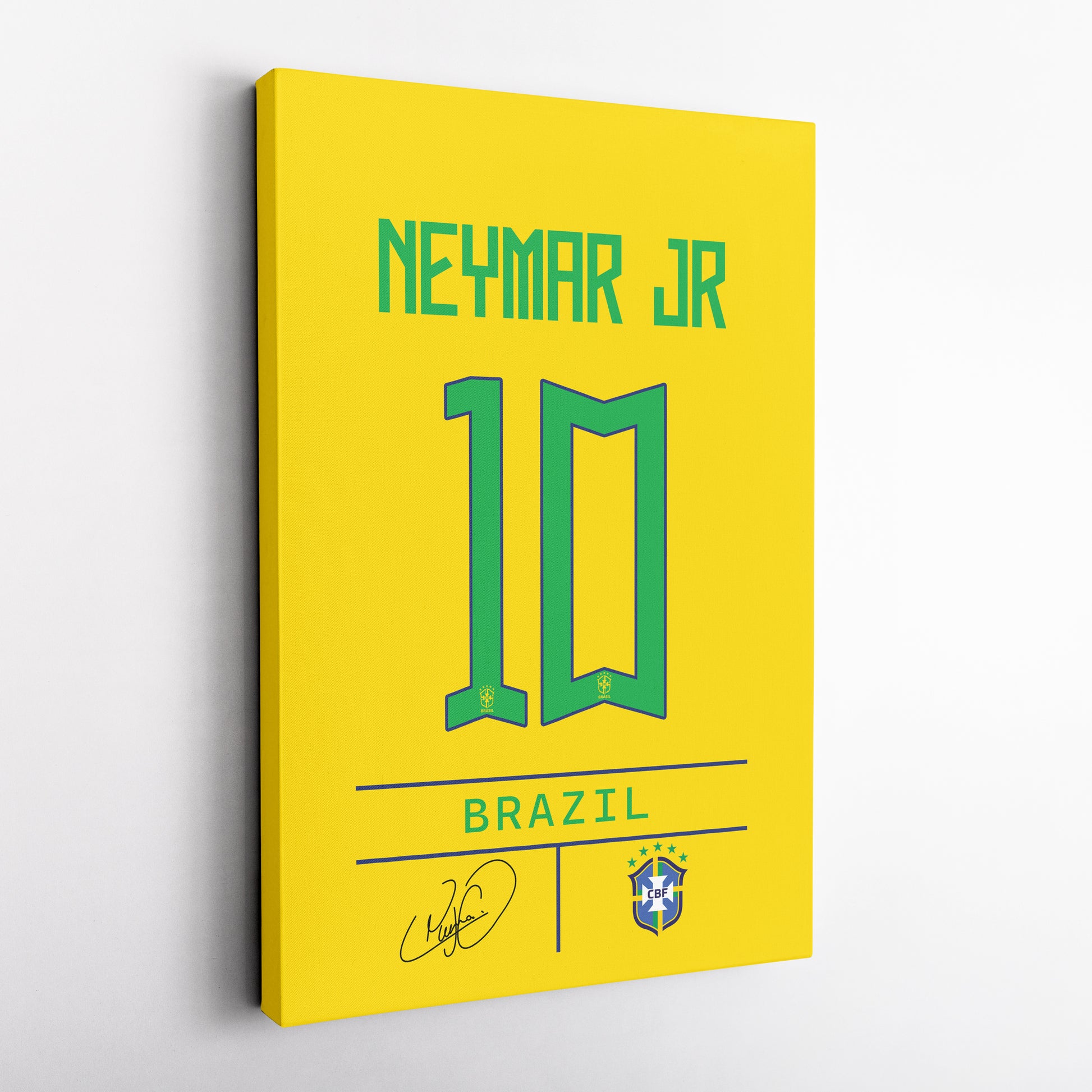 Elevate your space with this Neymar Jr. Jersey Canvas Print, designed to bring the energy of Brazil national team football into your home. Perfect for die-hard Brazil fans, this vibrant wall art captures the essence of Neymar Jr.’s electrifying dribbling, goal-scoring ability, and flair on the pitch. Whether you’re enhancing your fan cave, office, or living room, this made-to-order canvas print adds a bold and stylish touch to any setting.