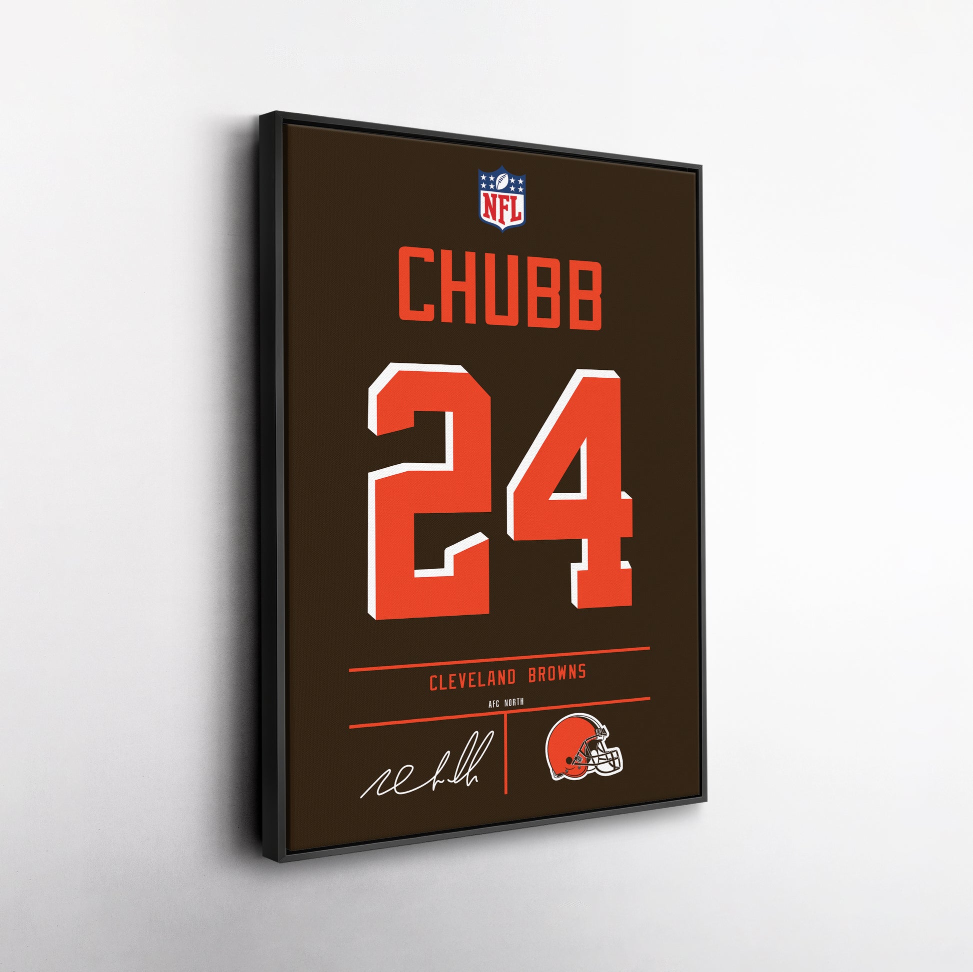 Featuring Nick Chubb’s iconic Cleveland Browns jersey number and team logo, this premium canvas is available in various sizes and can be framed or unframed to suit your decor needs. It’s the ideal gift for sports enthusiasts and football lovers alike, offering high-quality materials and a lasting impression.