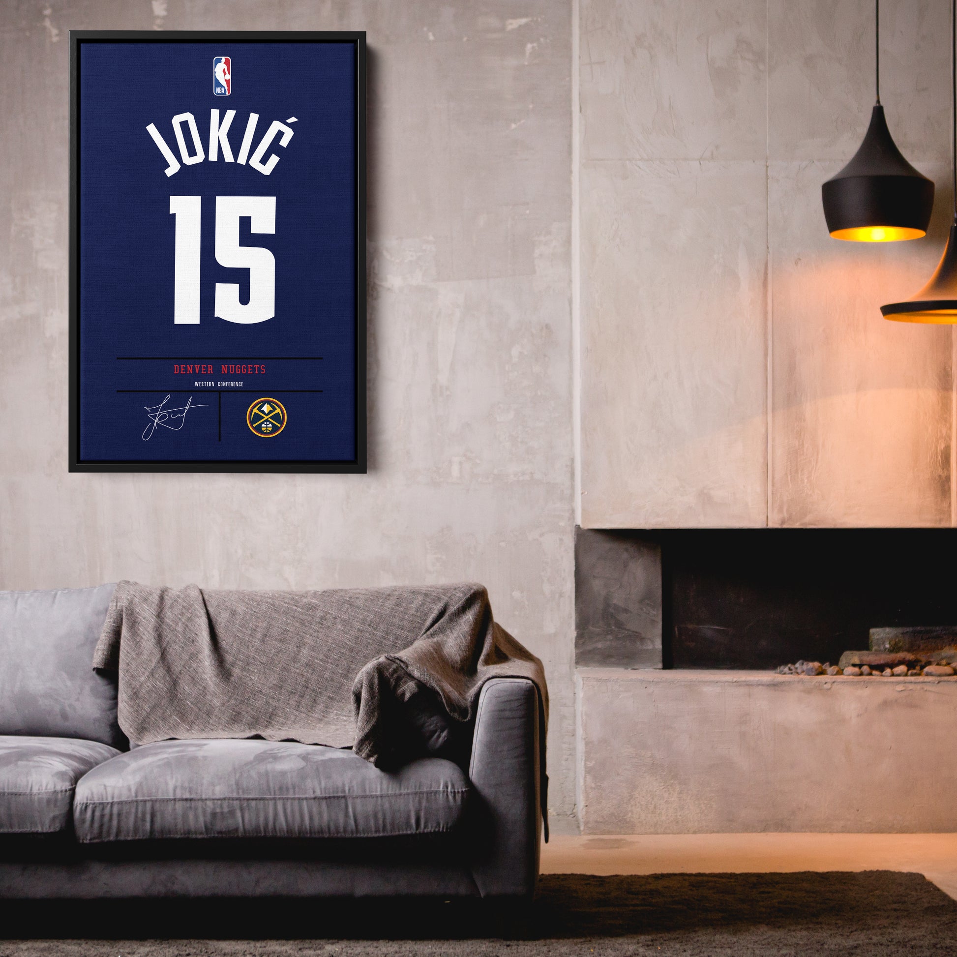 Elevate your space with this Nikola Jokic Jersey Canvas Print, designed to bring the energy of Denver Nuggets basketball into your home. Perfect for die-hard Nuggets fans, this vibrant wall art captures the essence of Nikola Jokic's legendary career. Whether you’re enhancing your fan cave, office, or living room, this made-to-order canvas print adds a bold and stylish touch to any setting.