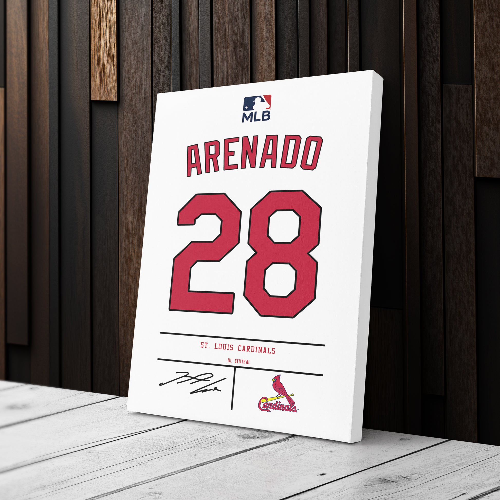 Featuring Nolan Arenado’s iconic Cardinals jersey number and team logo, this premium canvas is available in various sizes and can be framed or unframed to suit your decor needs. It’s the ideal gift for sports enthusiasts and baseball lovers alike, offering high-quality materials and a lasting impression.