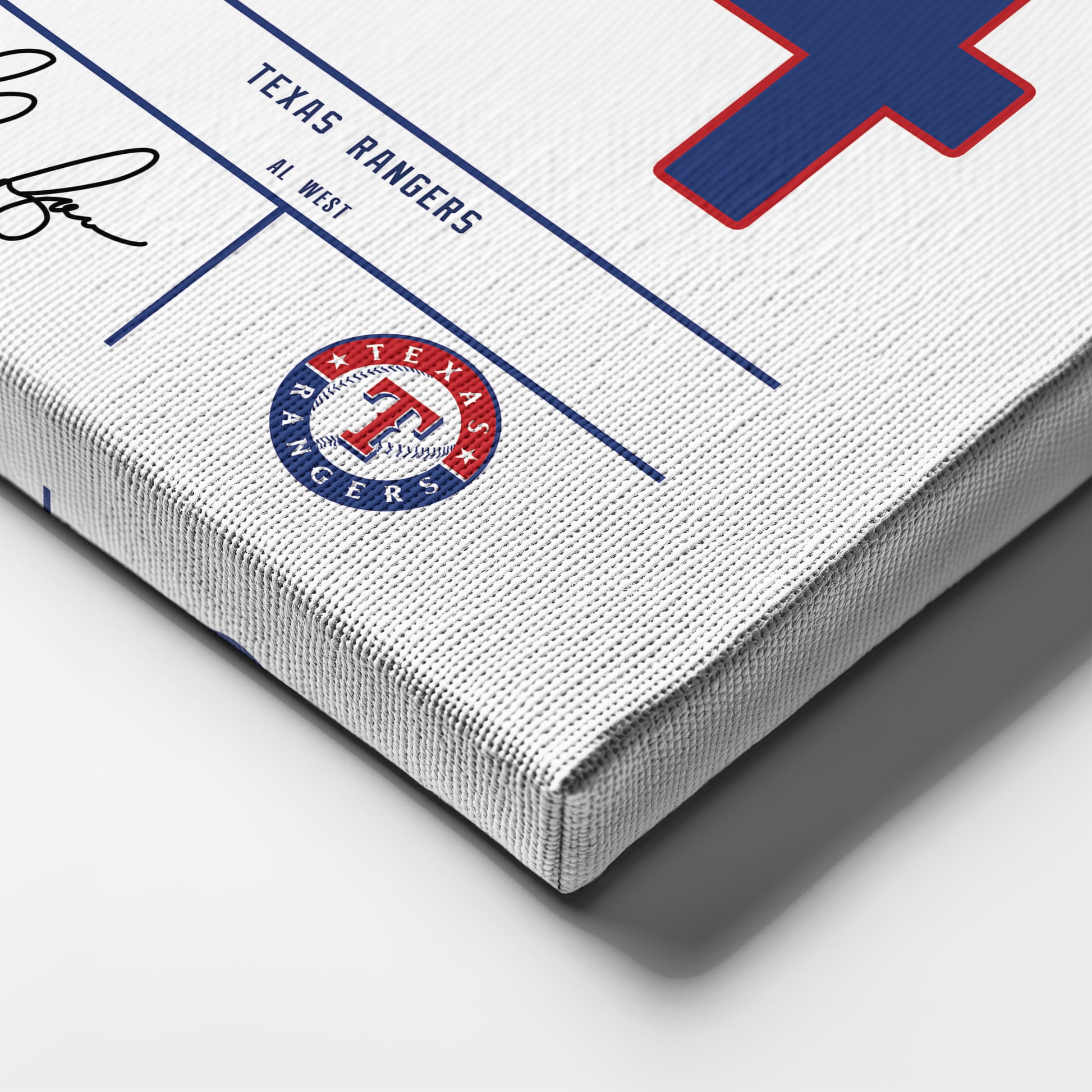 Featuring Nolan Ryan’s iconic Texas Rangers jersey number and team logo, this premium canvas is available in various sizes and can be framed or unframed to suit your decor needs. It’s the ideal gift for sports enthusiasts and baseball lovers alike, offering high-quality materials and a lasting impression.