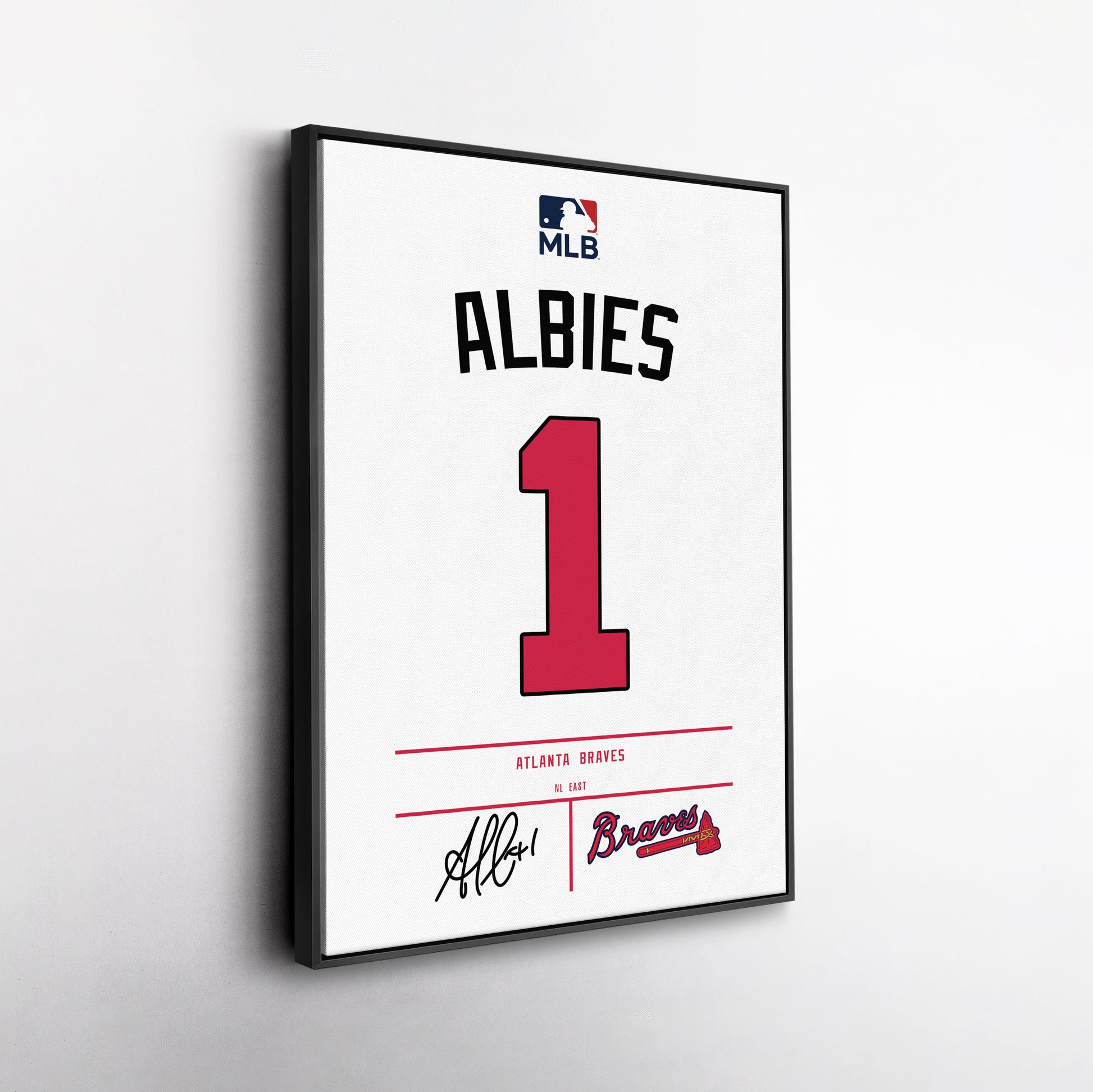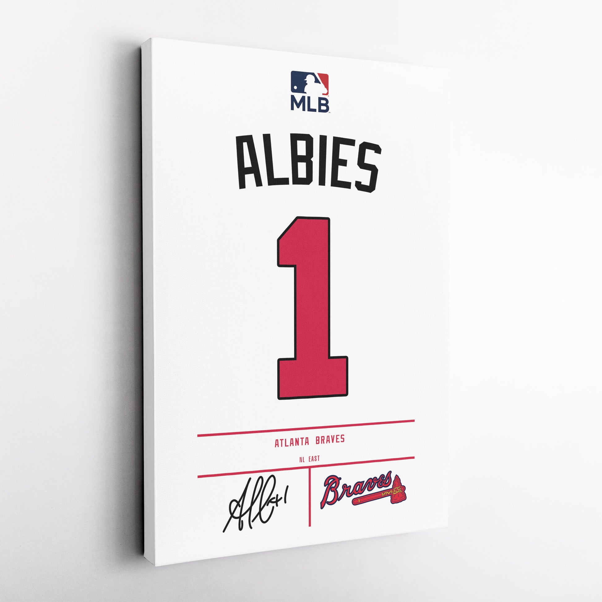 Featuring Ozzie Albies’ iconic Atlanta Braves jersey number and team logo, this premium canvas is available in various sizes and can be framed or unframed to suit your decor needs. It’s the ideal gift for sports enthusiasts and baseball lovers alike, offering high-quality materials and a lasting impression.
