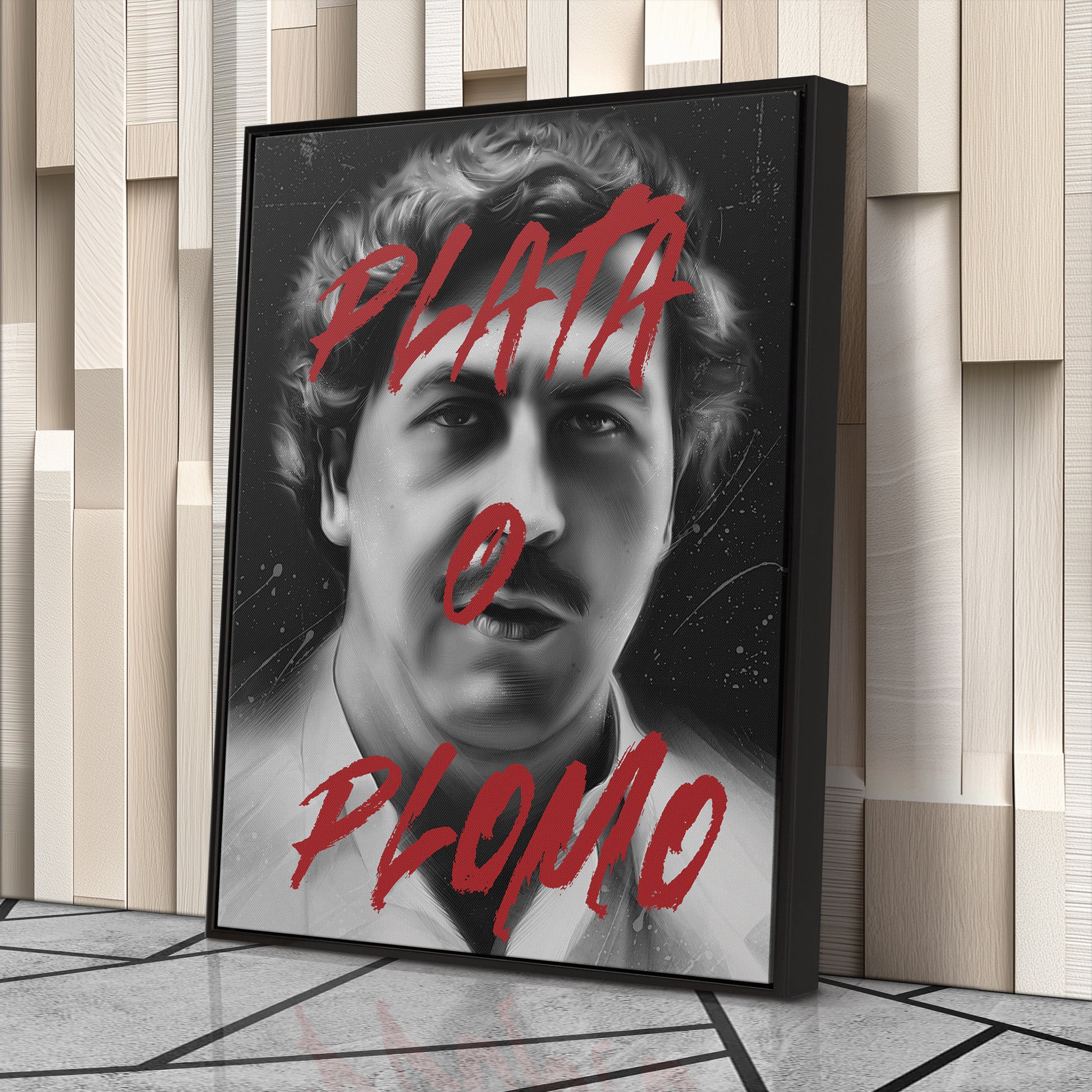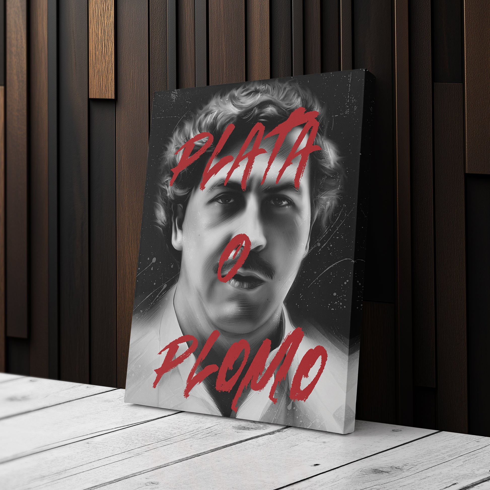 Step into the world of power, crime, and legend with this Pablo Escobar 'Plata o Plomo' Canvas Print, a striking tribute to one of history’s most infamous figures. Featuring Pablo Escobar with his signature look, along with the iconic phrase "Plata o Plomo" (Silver or Lead), this artwork encapsulates the ruthless choices and criminal empire that made him a household name. Whether you're a fan of crime history, pop culture, or bold statement art, this high-quality canvas print makes for a powerful addition to any space.