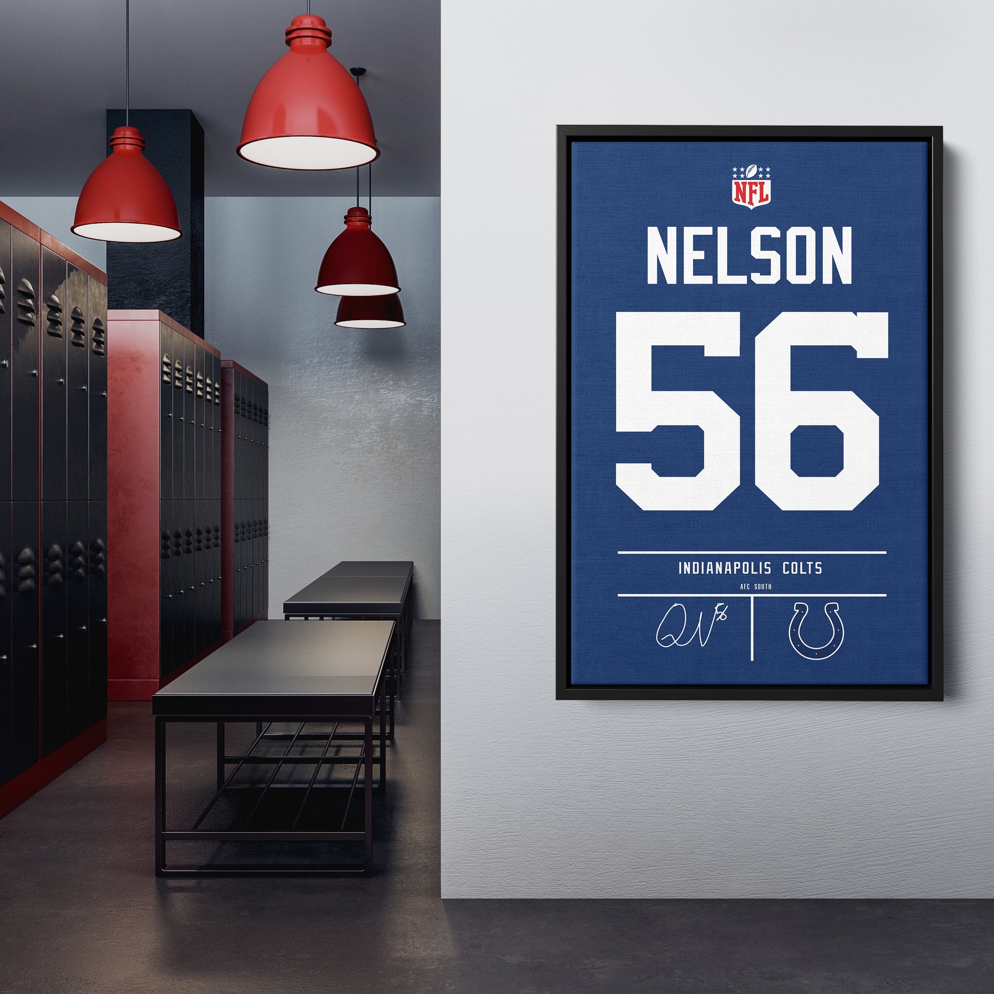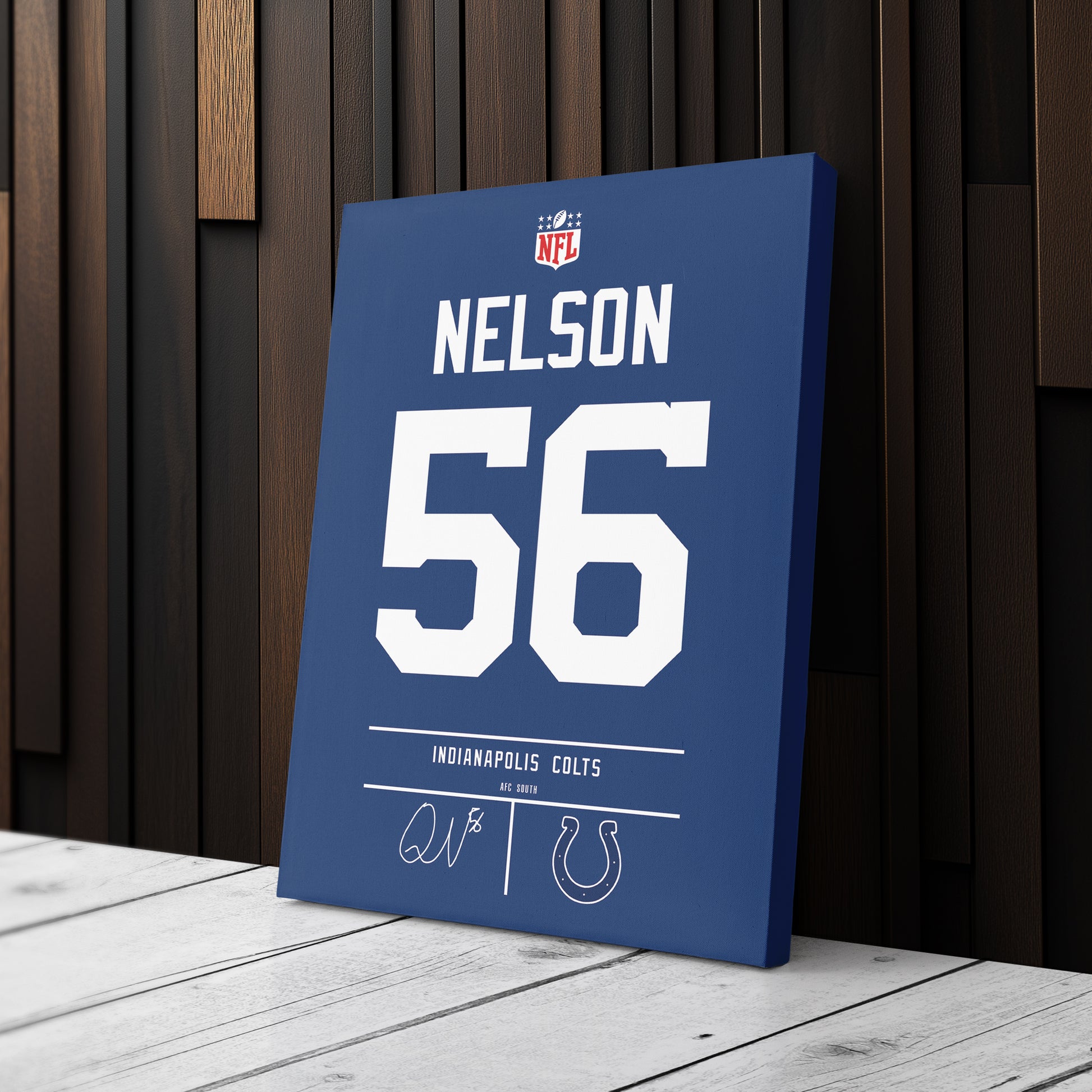 Featuring Quenton Nelson’s iconic Colts jersey number and team logo, this premium canvas is available in various sizes and can be framed or unframed to suit your decor needs. It’s the ideal gift for sports enthusiasts and football lovers alike, offering high-quality materials and a lasting impression.