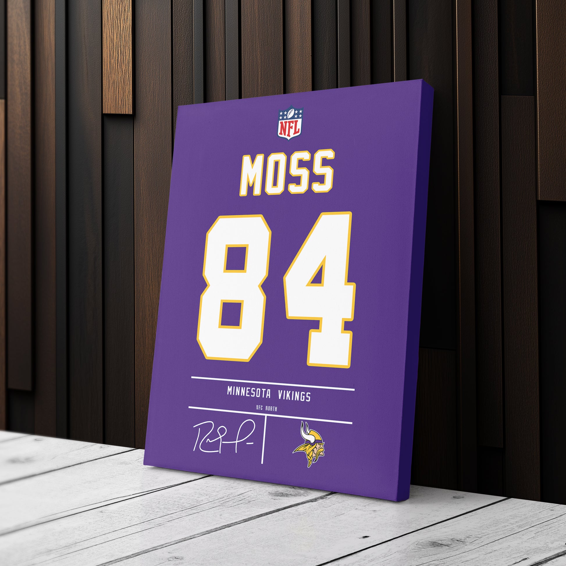 Featuring Randy Moss’ iconic Minnesota Vikings jersey number and team logo, this premium canvas is available in various sizes and can be framed or unframed to suit your decor needs. It’s the ideal gift for sports enthusiasts and football lovers alike, offering high-quality materials and a lasting impression.