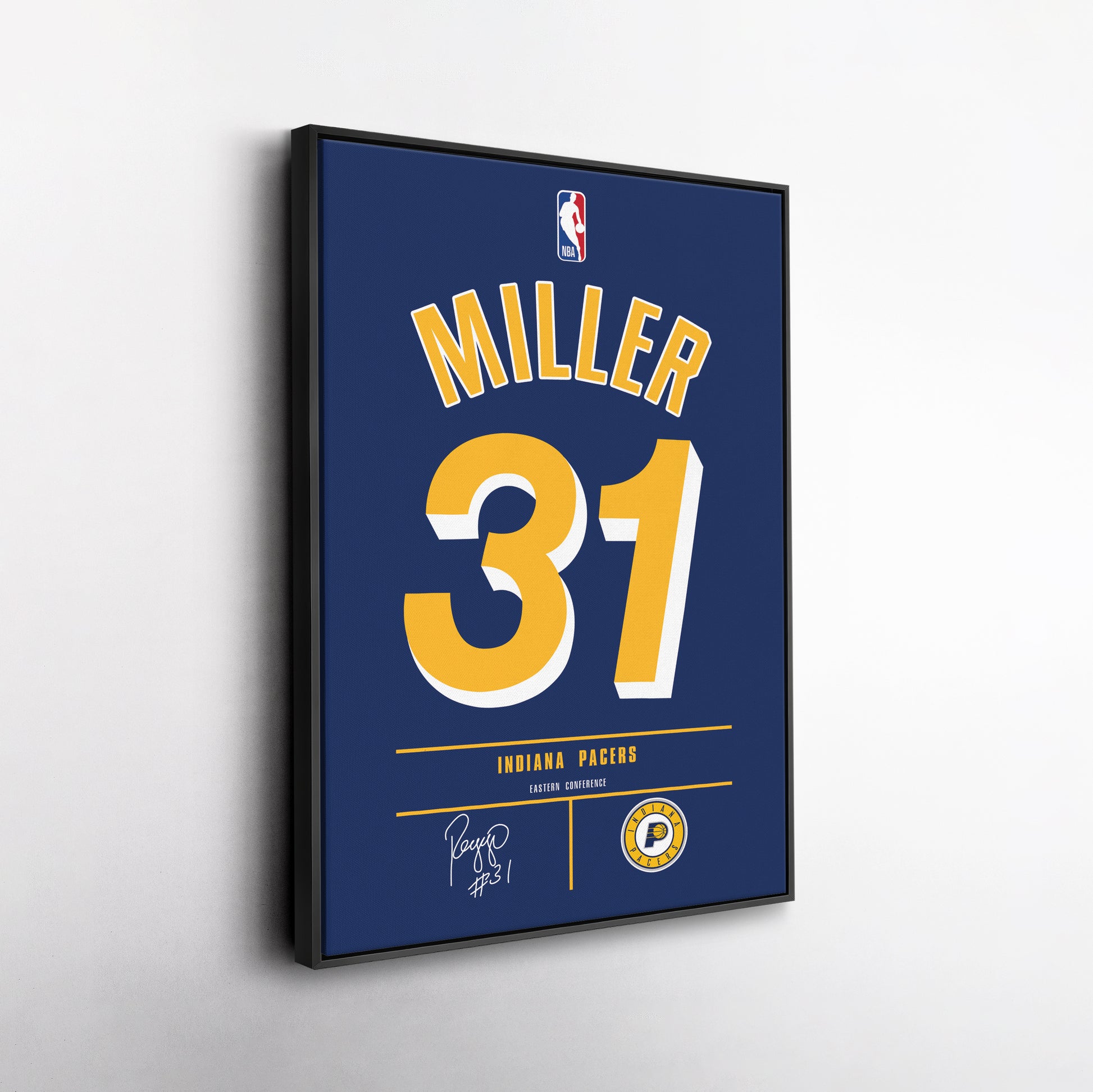 Featuring Reggie Miller’s iconic Indiana Pacers jersey number and team logo, this premium canvas is available in various sizes and can be framed or unframed to suit your decor needs. It’s the ideal gift for sports enthusiasts and basketball lovers alike, offering high-quality materials and a lasting impression.