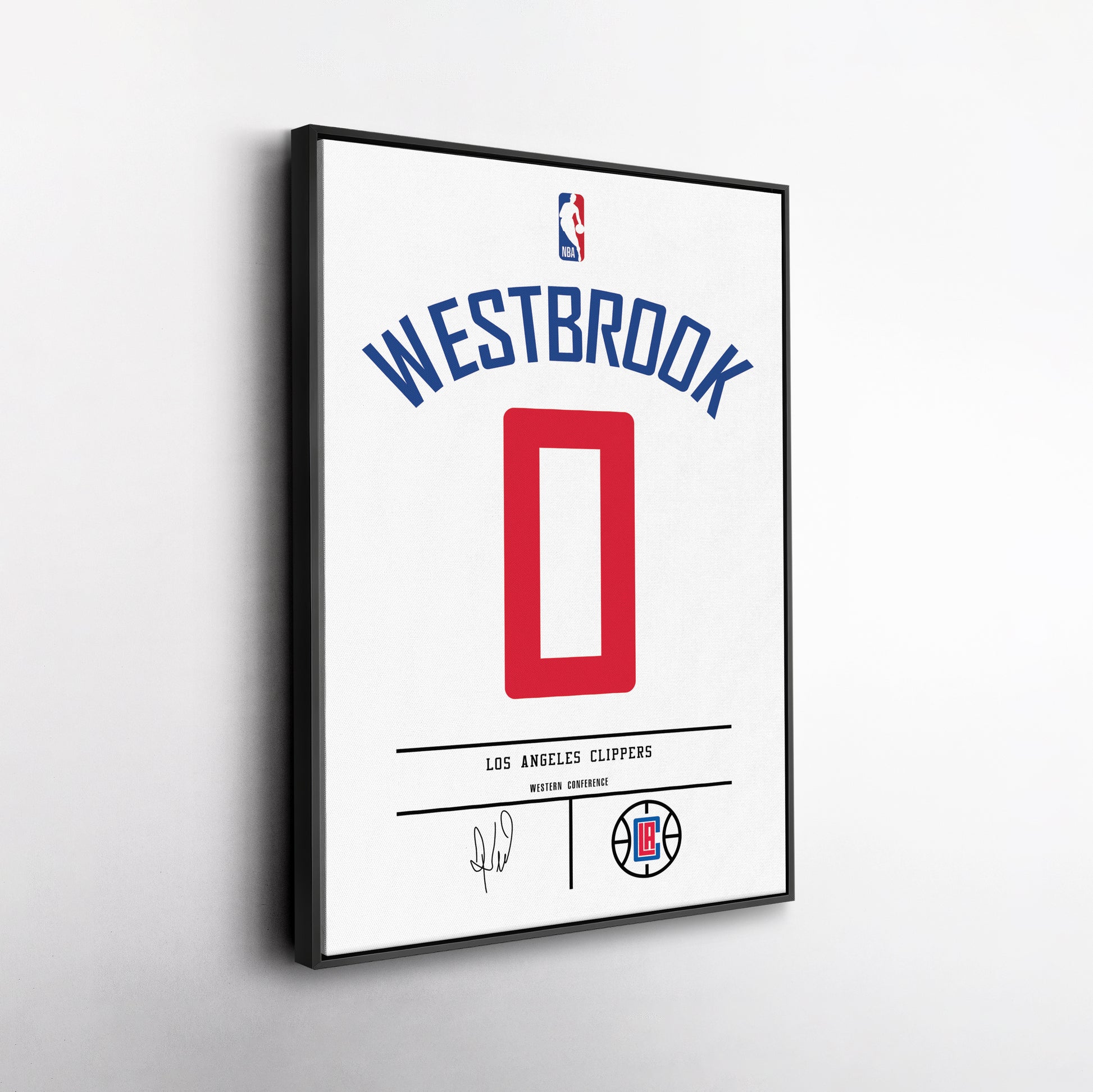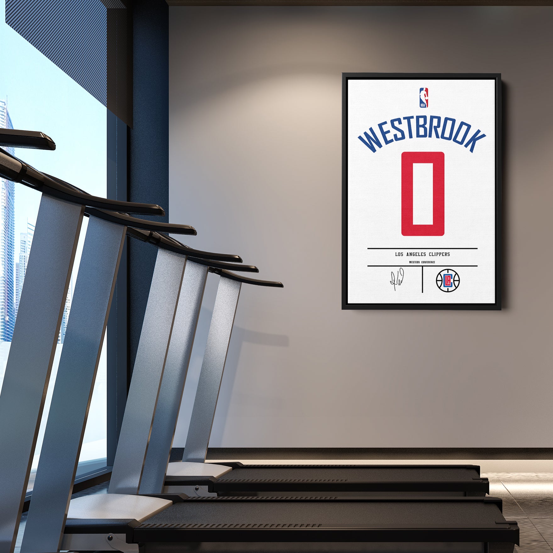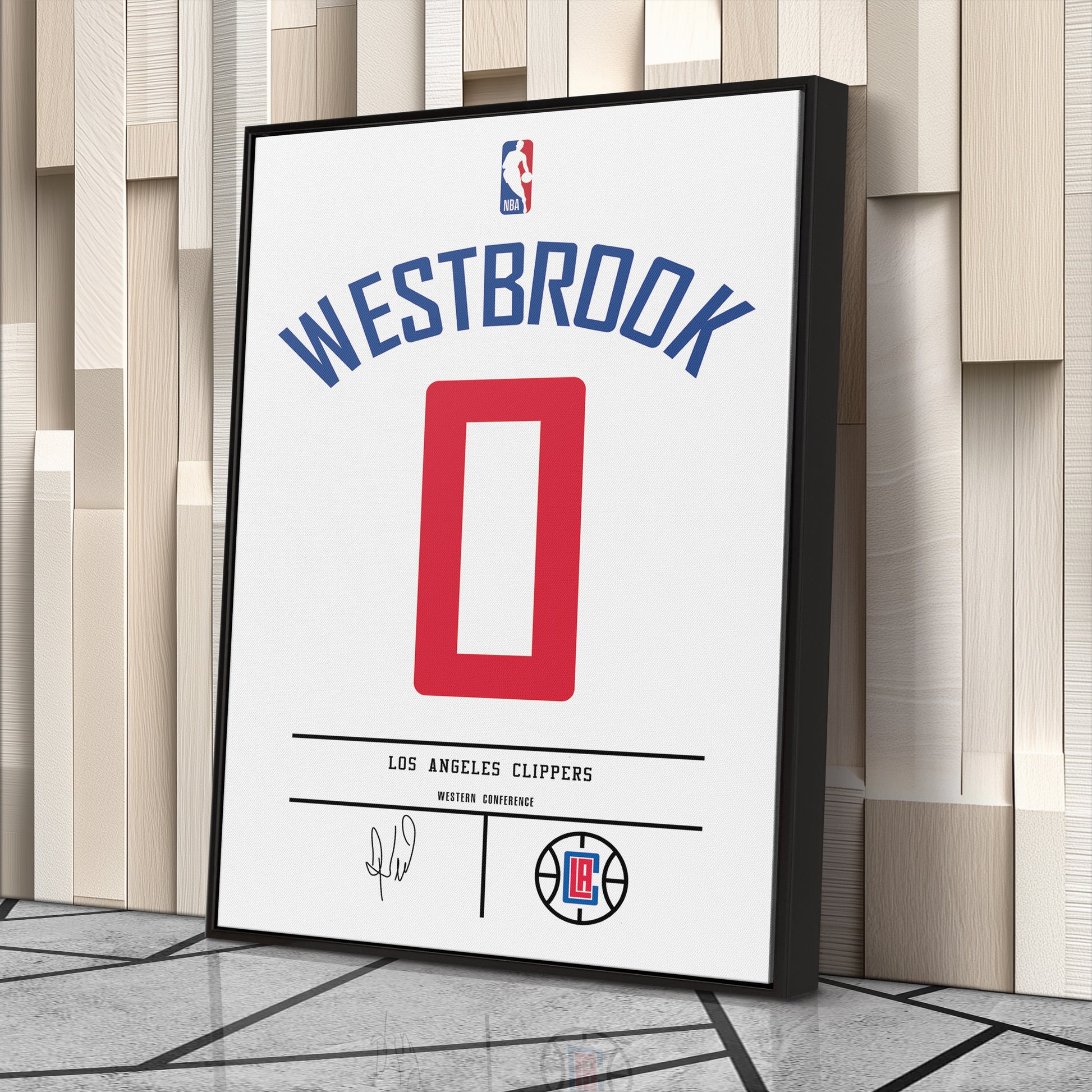 Featuring Russell Westbrook’s iconic Clippers jersey number and team logo, this premium canvas is available in various sizes and can be framed or unframed to suit your decor needs. It’s the ideal gift for sports enthusiasts and basketball lovers alike, offering high-quality materials and a lasting impression.