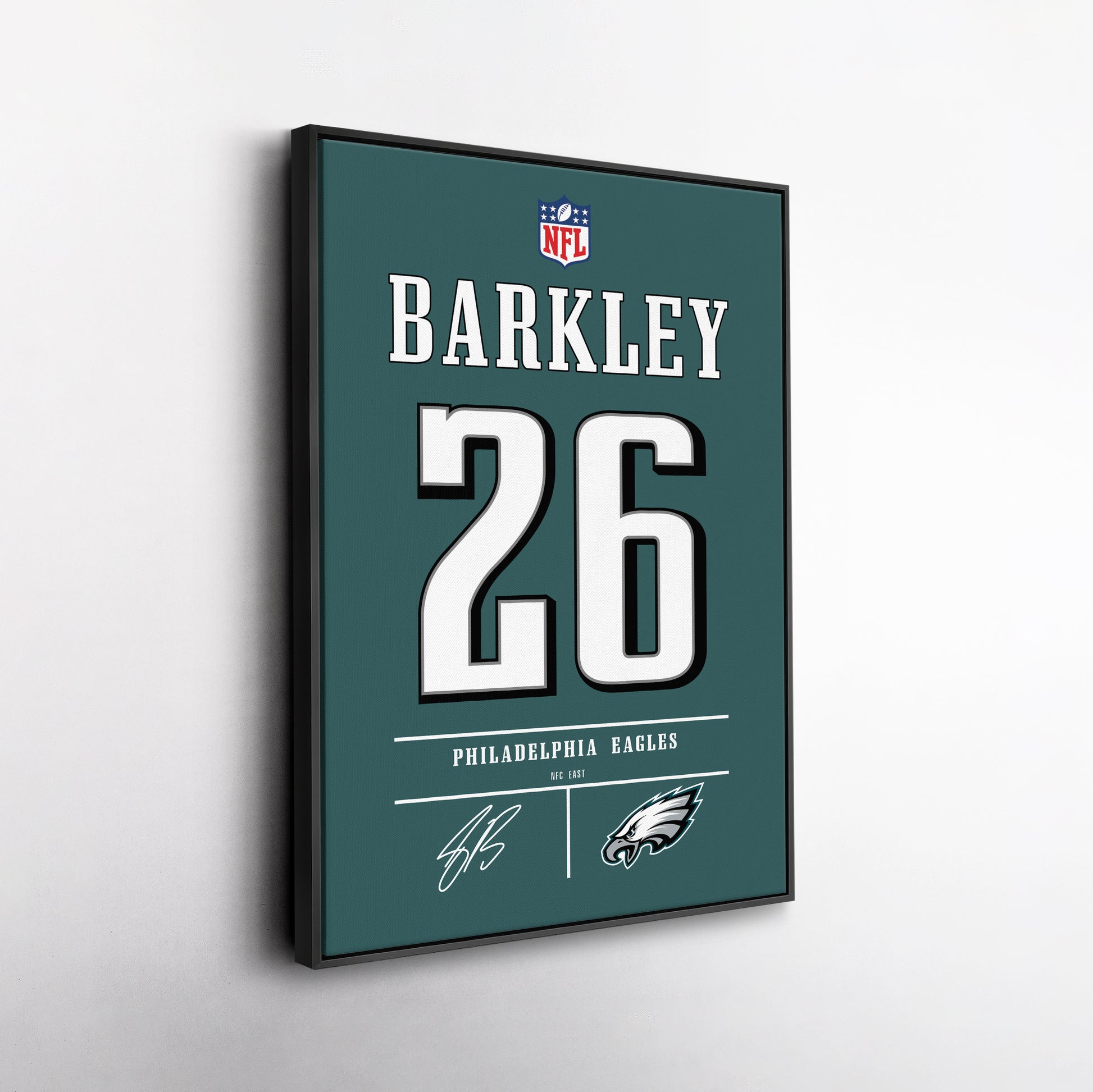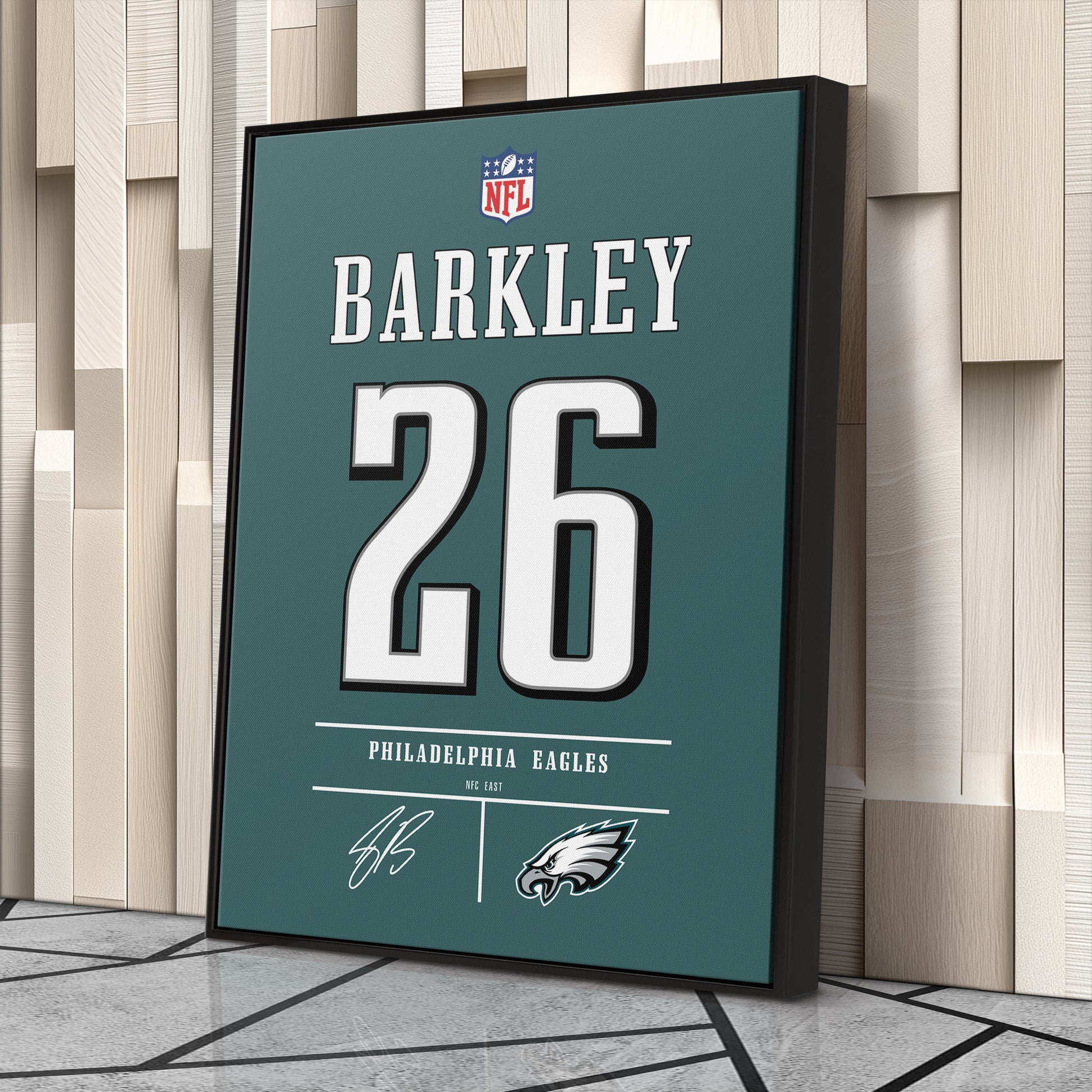 Featuring Saquon Barkley’s bold Eagles jersey number and team logo, this premium canvas is available in various sizes and can be framed or unframed to match your style. A must-have for fans of both Barkley and the Eagles, this high-quality canvas is perfect for any sports enthusiast’s collection.