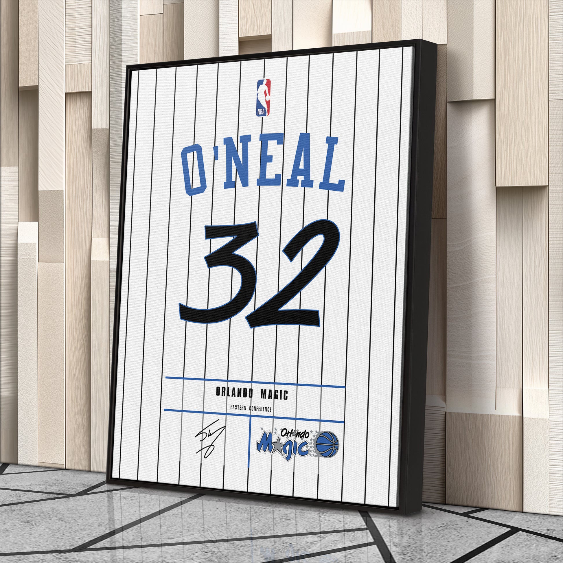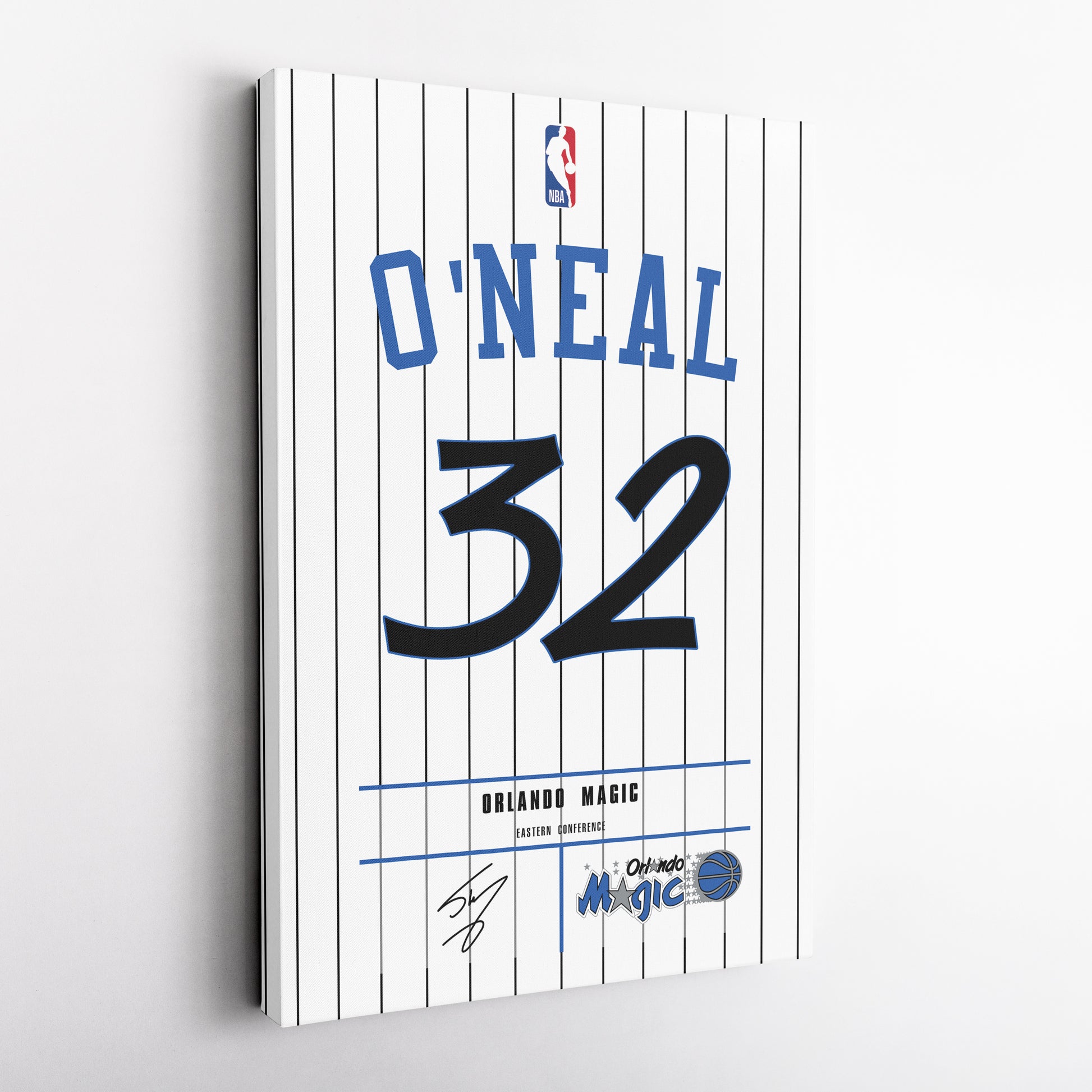 Featuring Shaquille O'Neal’s iconic Magic jersey number and team logo, this premium canvas is available in various sizes and can be framed or unframed to suit your decor needs. It’s the ideal gift for sports enthusiasts and basketball lovers alike, offering high-quality materials and a lasting impression.
