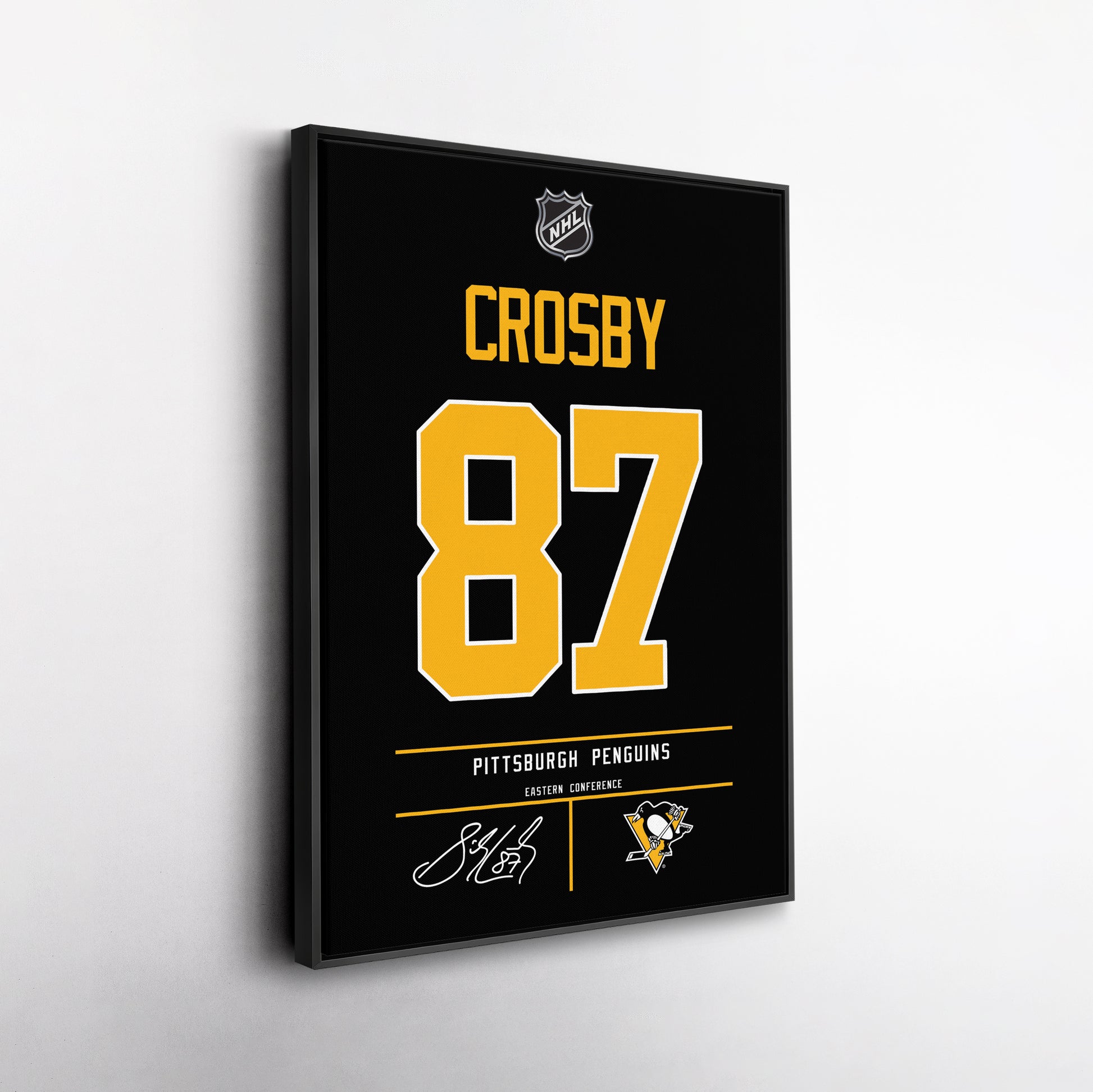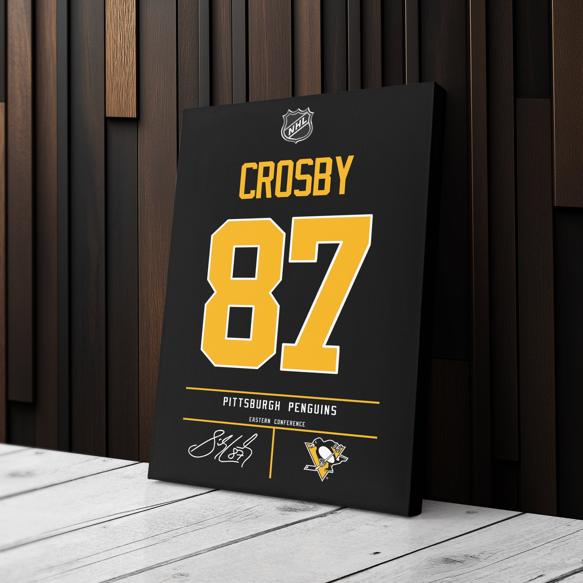 Elevate your space with this Sidney Crosby Jersey Canvas Print, designed to bring the energy of Pittsburgh Penguins hockey into your home. Perfect for die-hard Penguins fans, this vibrant wall art captures the essence of Sidney Crosby's legendary career. Whether you’re enhancing your fan cave, office, or living room, this made-to-order canvas print adds a bold and stylish touch to any setting.