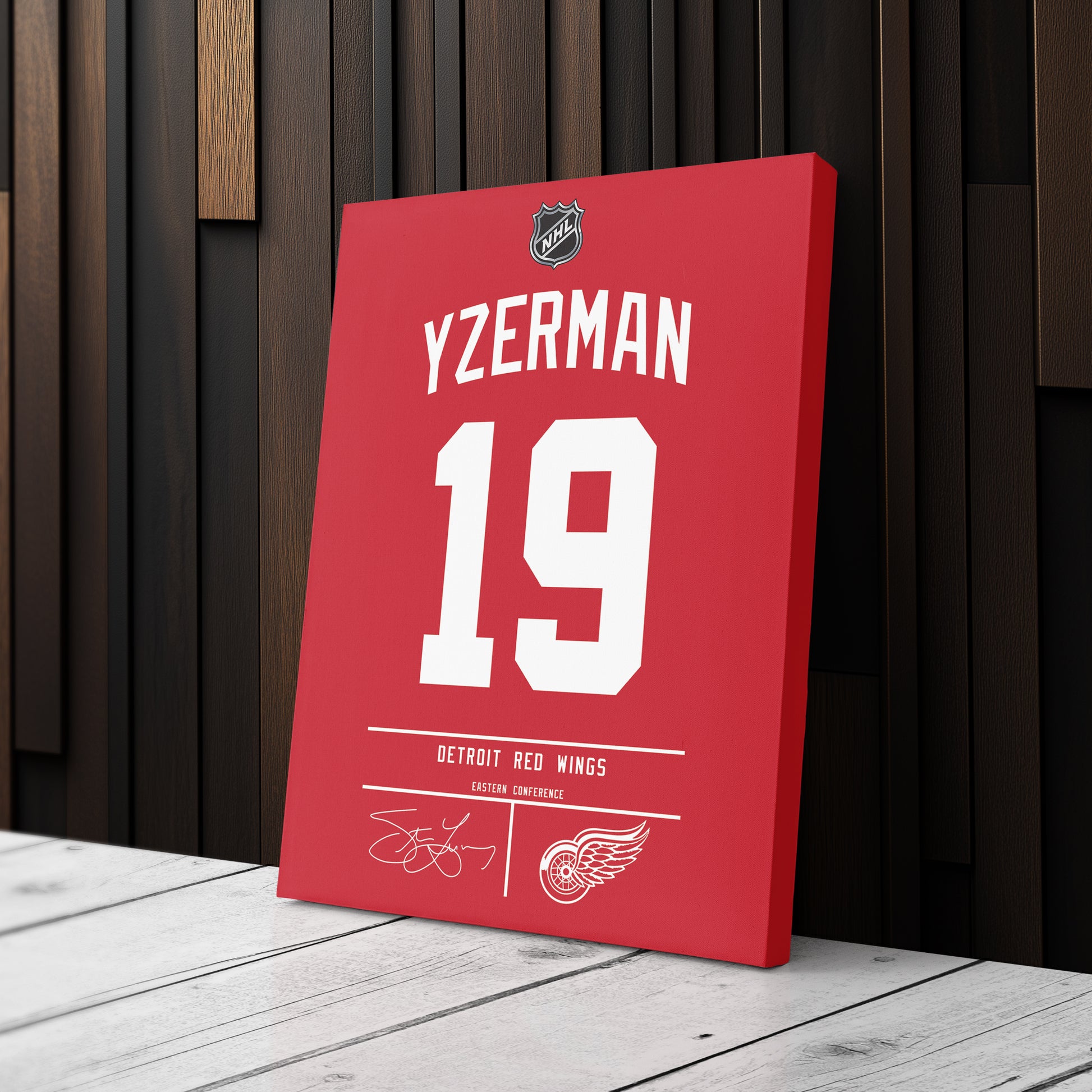 Featuring Steve Yzerman’s iconic Detroit Red Wings jersey number and team logo, this premium canvas is available in various sizes and can be framed or unframed to suit your decor needs. It’s the ideal gift for sports enthusiasts and hockey lovers alike, offering high-quality materials and a lasting impression.