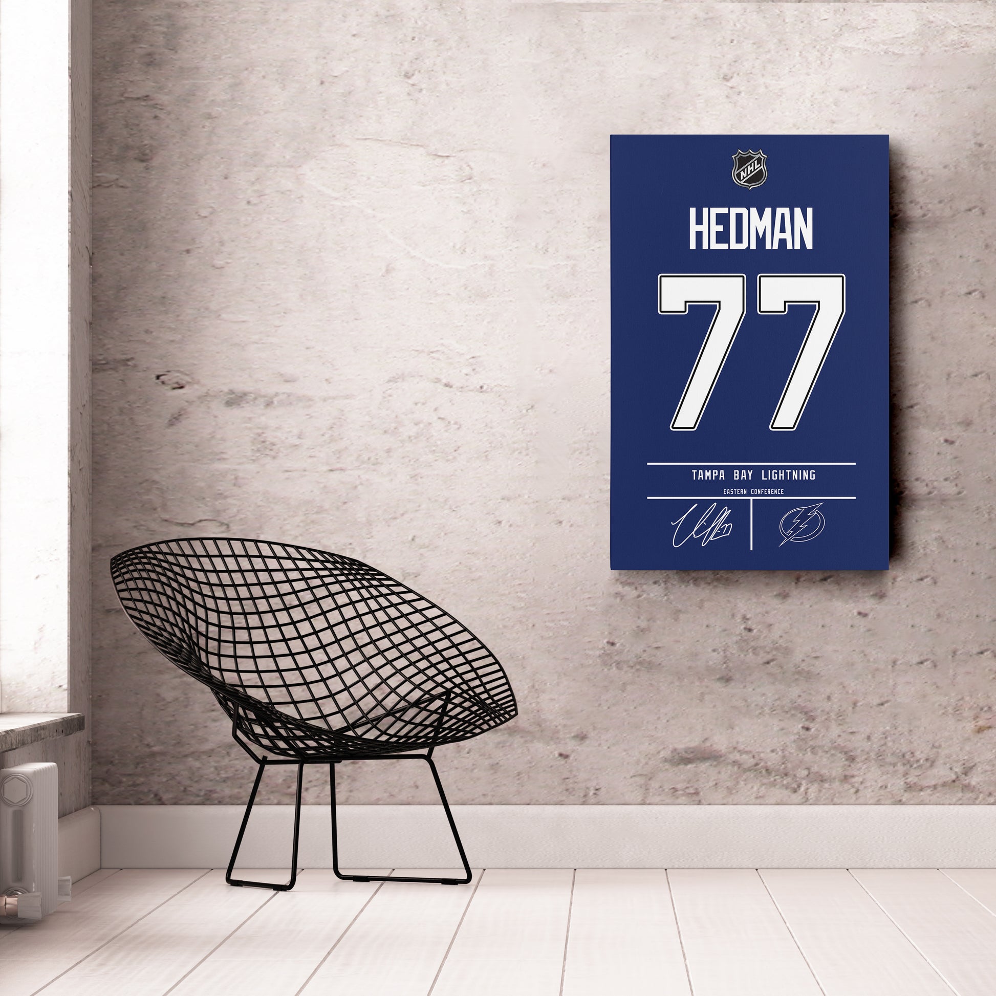 Featuring Victor Hedman’s iconic Lightning jersey number and team logo, this premium canvas is available in various sizes and can be framed or unframed to suit your decor needs. It’s the ideal gift for sports enthusiasts and hockey lovers alike, offering high-quality materials and a lasting impression.