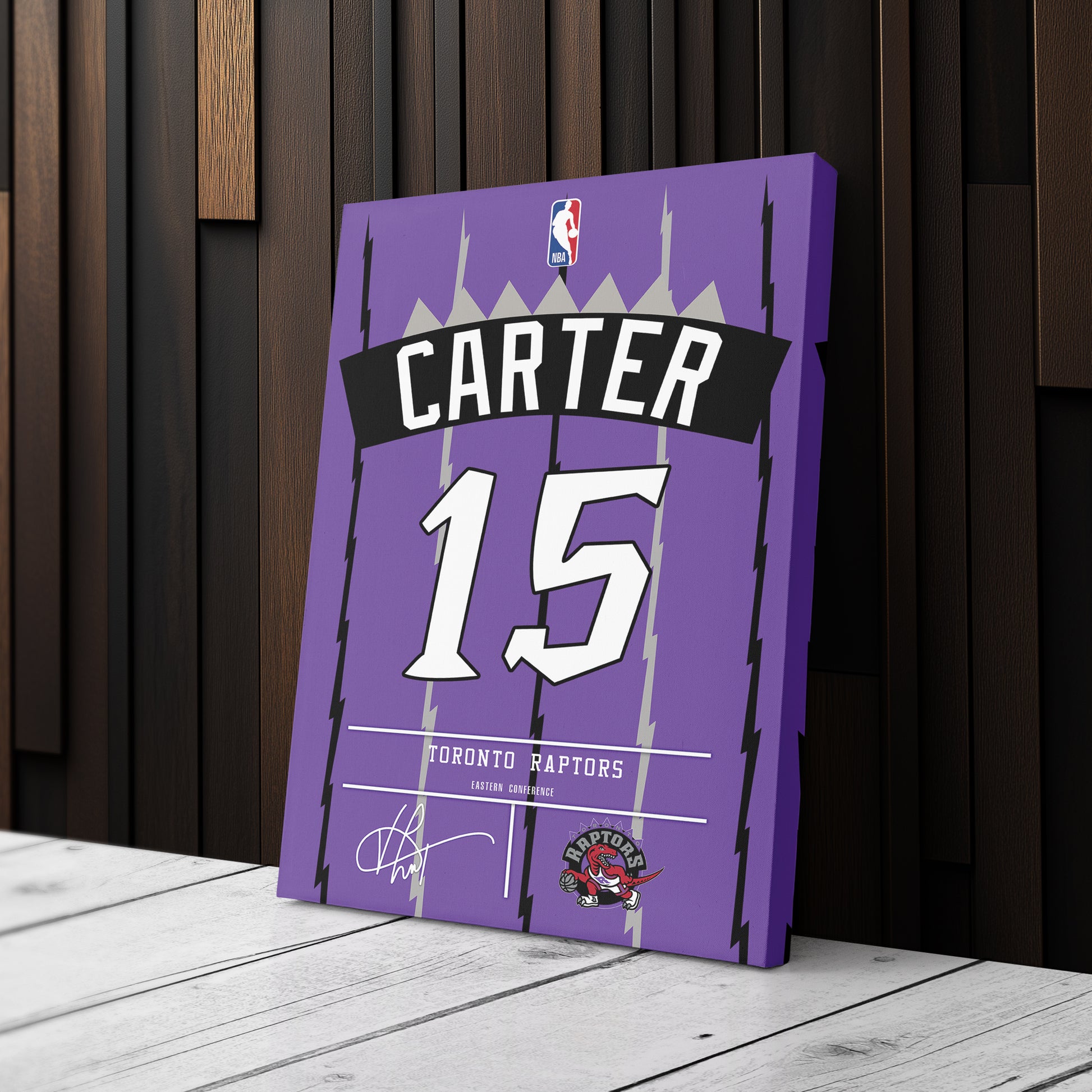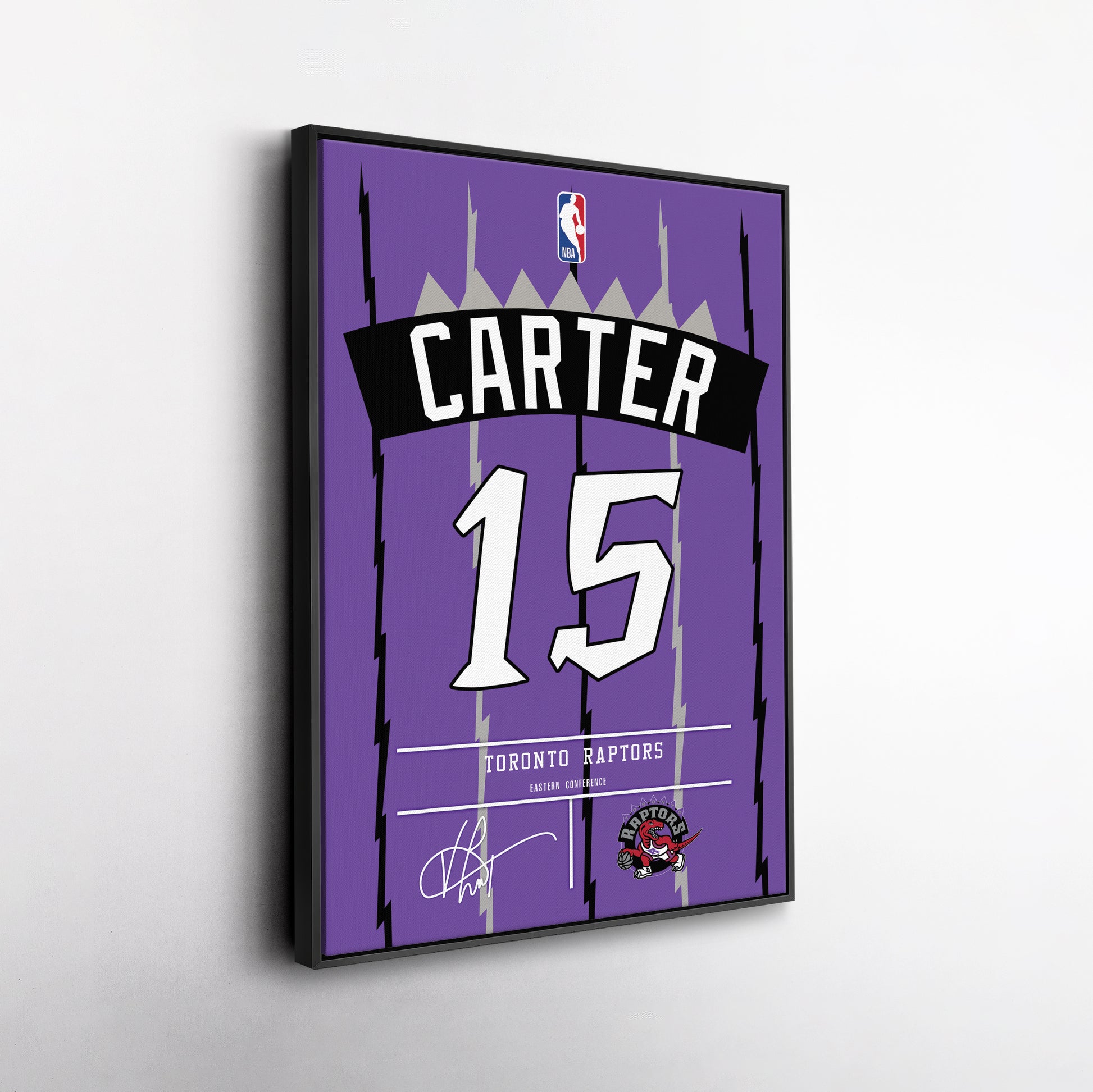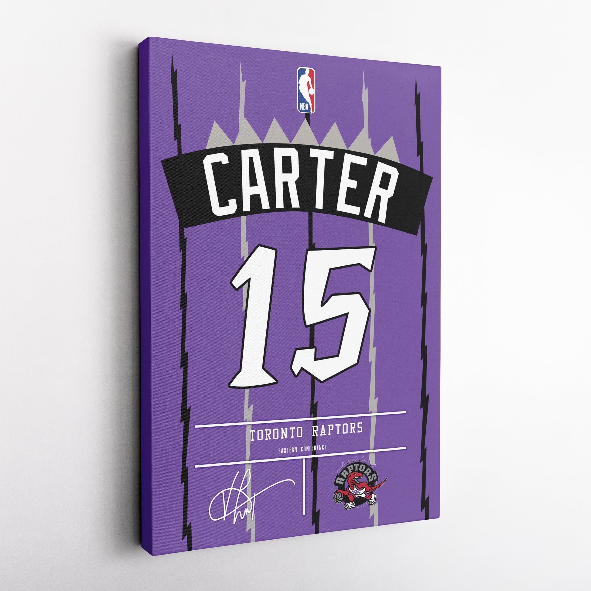 Featuring Vince Carter’s iconic Raptors jersey number and team logo, this premium canvas is available in various sizes and can be framed or unframed to suit your decor needs. It’s the ideal gift for sports enthusiasts and basketball lovers alike, offering high-quality materials and a lasting impression.