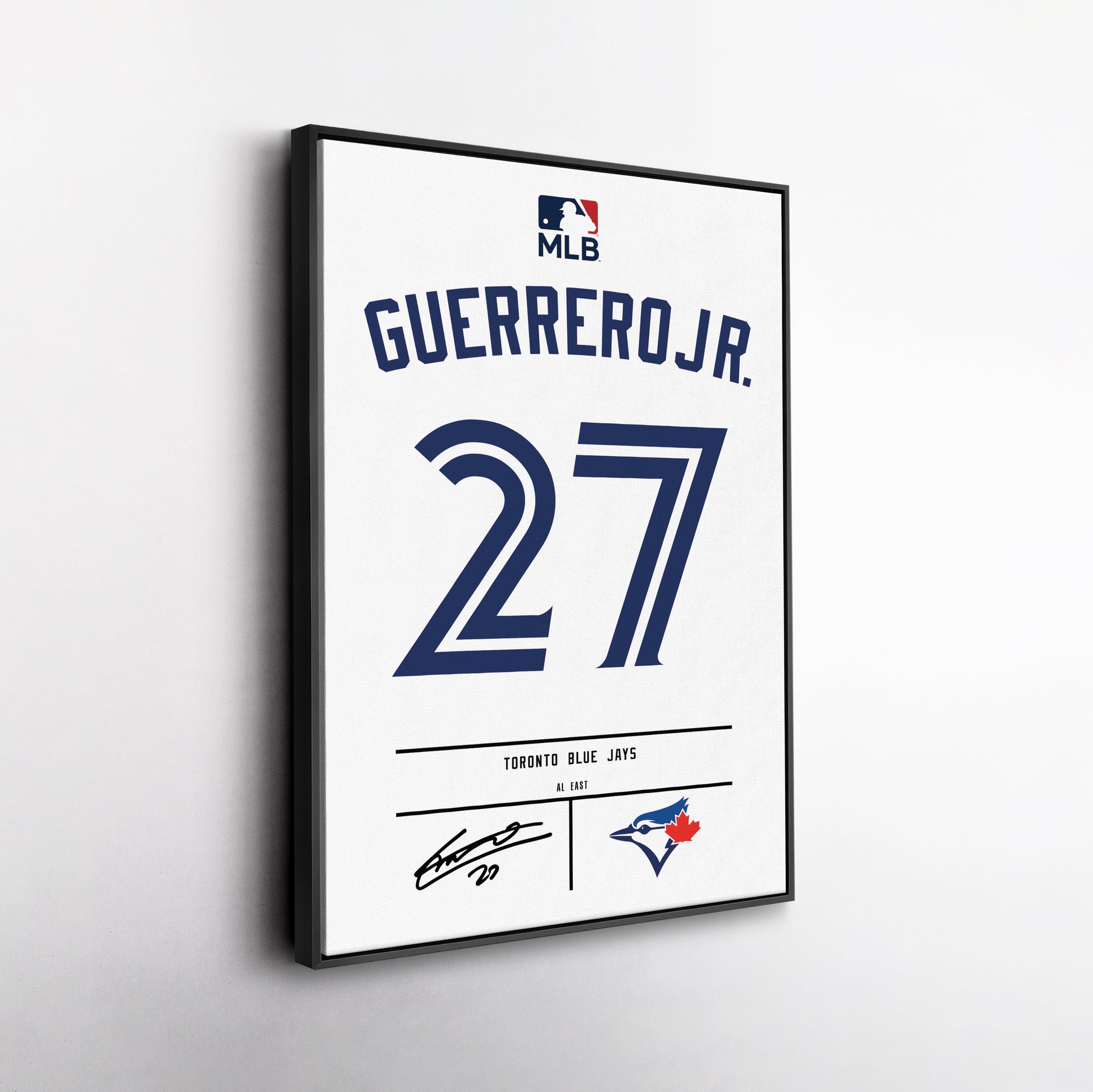 Elevate your space with this Vladimir Guerrero Jr. Jersey Canvas Print, designed to bring the energy of Toronto Blue Jays baseball into your home. Perfect for die-hard Blue Jays fans, this vibrant wall art captures the essence of Vladimir Guerrero Jr.'s exceptional career. Whether you’re enhancing your fan cave, office, or living room, this made-to-order canvas print adds a bold and stylish touch to any setting.