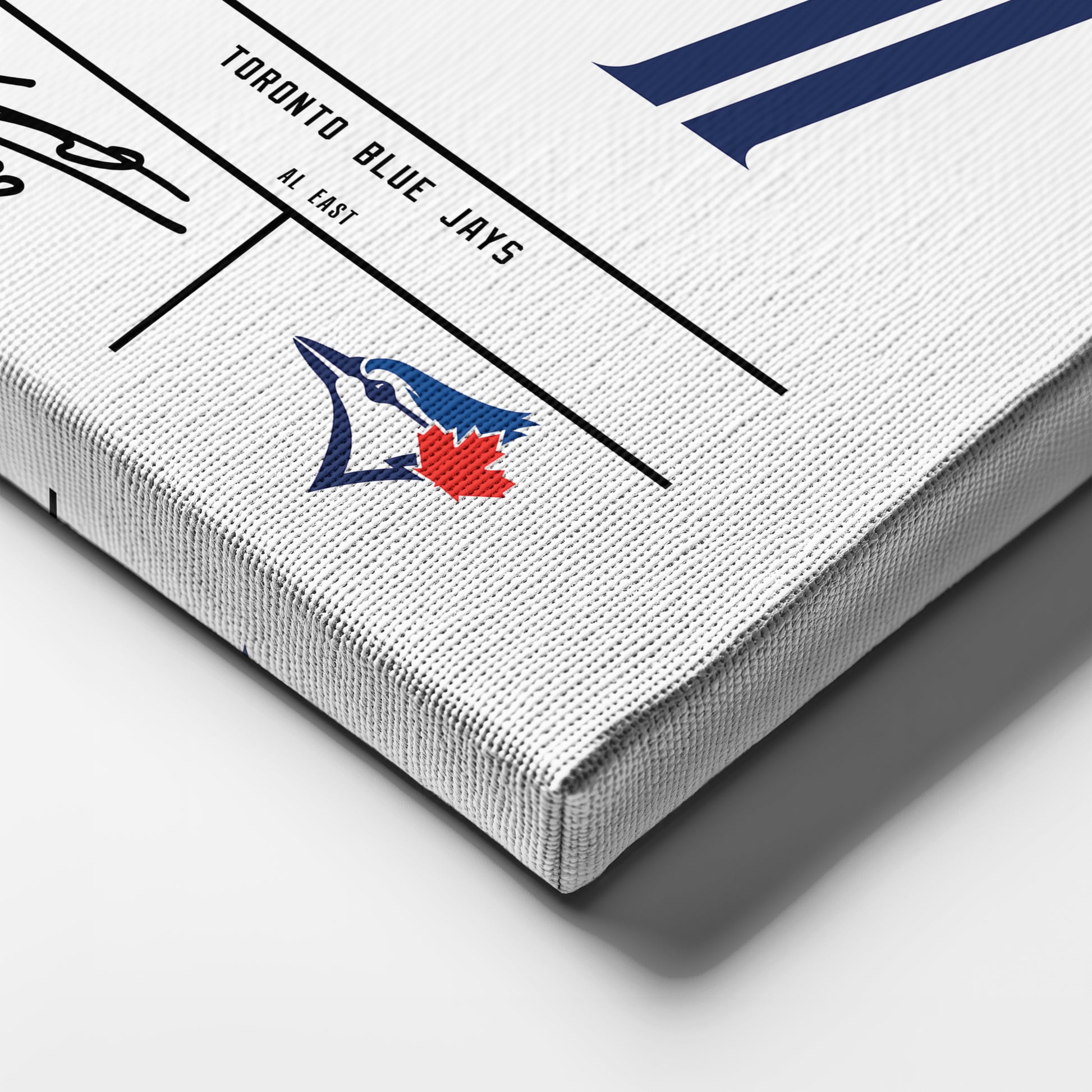 Featuring Vladimir Guerrero Jr.’s iconic Blue Jays jersey number and team logo, this premium canvas is available in various sizes and can be framed or unframed to suit your decor needs. It’s the ideal gift for sports enthusiasts and baseball lovers alike, offering high-quality materials and a lasting impression.